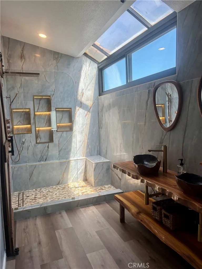Stunning, fully remodeled home ideally located near major toll roads and freeways, and within the highly sought-after Laguna Beach Unified School District. This exceptional residence is nestled in a beautiful neighborhood and offers the perfect blend of luxury, comfort, and modern convenience. A custom glass and iron entry door welcomes you into a dramatic two-story foyer featuring a designer chandelier and elegant LifeProof luxury vinyl plank flooring throughout. The open-concept great room seamlessly combines the living and dining areas, highlighted by a striking ledger-stacked stone fireplace. The chef’s kitchen is truly breathtaking, thoughtfully designed with high-end finishes and premium appliances including a Thermador 4-burner professional range with convection oven, smart refrigerator, and dishwasher. A hammered copper farmhouse sink with upgraded faucet, abundant cabinetry, and generous counter space make this kitchen as functional as it is beautiful. A casual dining area with built-in sideboard and cabinets complete this family kitchen! A charming Dutch door opens to a low-maintenance wraparound backyard featuring multiple fruit trees—perfect for indoor-outdoor living. The main level also includes a convenient powder room and direct access to a two-car garage with epoxy-coated flooring, complete with a high-end smart washer and dryer. Upstairs, you’ll find 4 spacious bedrooms and 2 fully upgraded bathrooms featuring smart toilets. The expansive primary suite with double doors offers a true retreat, with a spa-inspired bathroom showcasing a walk in shower with multiple shower features, including a luxurious rain shower. Custom decorator vanity with custom mirrors and a rolling barn door that opens to a walk in closet with built-in's. Additional highlights include brand new energy-efficient windows with sun protection, a built-in Nest system, keyless entry, three exterior security cameras, solar panels with two Powerwall batteries, and a Tesla charger. This turnkey home offers an exceptional leasing opportunity with every modern upgrade—ready for immediate enjoyment. Park with playground is close by, highly rated Laguna Beach unified school district, close to Laguna Beach with world famous beaches and resorts, entertainment, restaurants, art galleries and shopping.