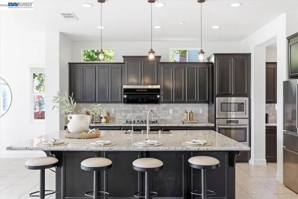 Exceptional luxury home in the prestigious Positano community of Dublin, offering approximately 4,063 sq ft of thoughtfully designed living space with 6 bedrooms and 4.5 bathrooms. The flexible floor plan features split bedrooms on the first level, perfect for guests, extended family, or a home office. This NE facing home, with bright, open-concept layout includes spacious living and dining areas and a gourmet kitchen that flows seamlessly into the family room—ideal for entertaining and daily family life. Upstairs, the luxurious primary suite features a spa-inspired bathroom with soaking tub, dual vanities, and generous walk-in closets, while additional bedrooms provide space for growing families. Enjoy a premium lot with no rear neighbors and a beautifully landscaped backyard offering panoramic hill and valley views—a serene retreat for relaxation or outdoor gatherings. Located within the boundaries of top-rated Dublin schools and walking distance to school and parks, close to shopping, dining, outlet, and I-580 for easy commuting. A rare opportunity to own a sophisticated, family-friendly home in one of East Dublin’s premier neighborhoods.