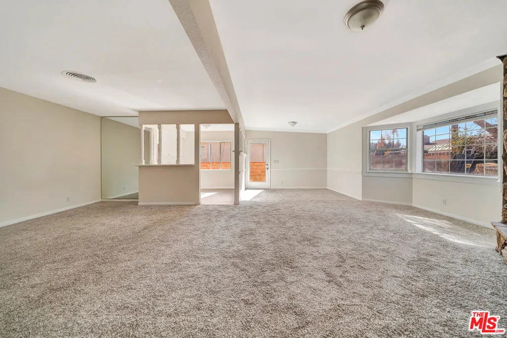 This charming single-story home blends mid-century character with modern updates, featuring an inviting front porch and a meticulously landscaped exterior that provides immediate curb appeal. Inside, the spacious open-concept living area is defined by soaring vaulted ceilings with exposed wood beams and large windows that fill the space with natural light. A stunning stone fireplace serves as a central focal point, while elegant wood-look flooring flows seamlessly throughout the main living spaces. The gourmet kitchen is a chef's dream, complete with sleek countertops, high-end stainless steel appliances, and modern cabinetry designed for both style and functionality. Outside, the private backyard retreat offers a low-maintenance patio area perfect for entertaining and dining. This exceptional property, which includes a convenient two-car garage, represents a rare opportunity to experience a residence that perfectly balances timeless design with contemporary comfort.
