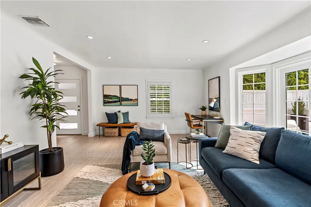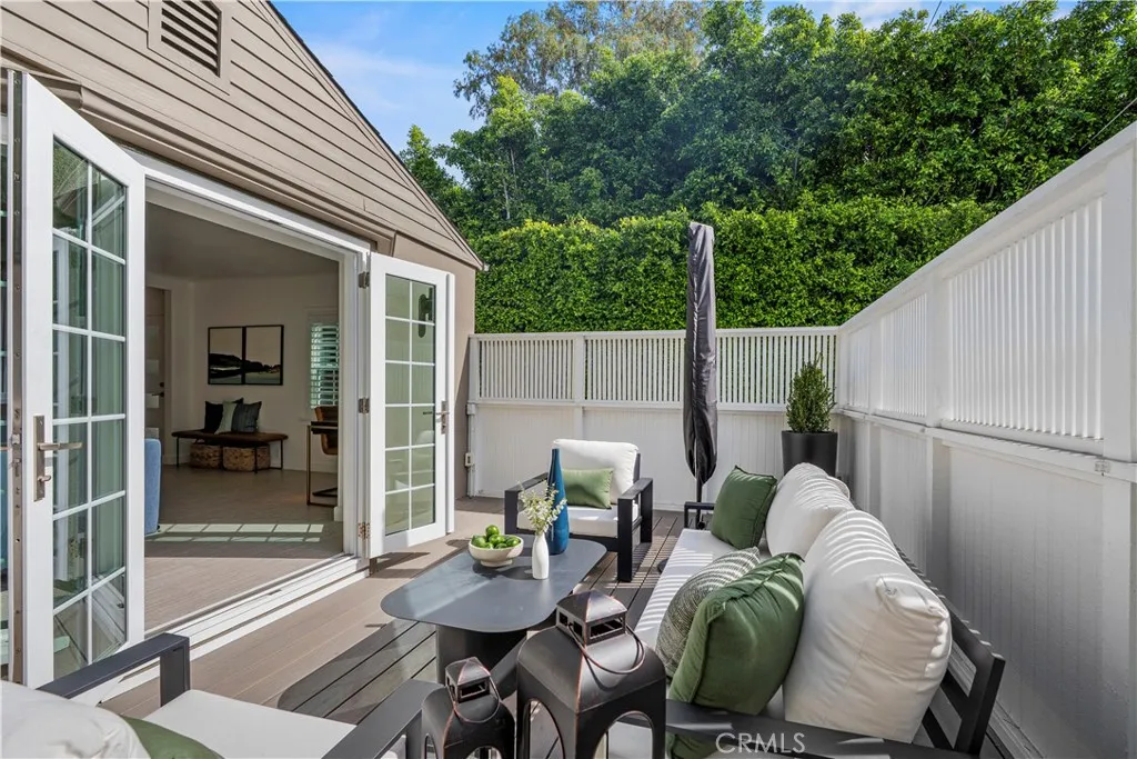 Move into this turn-key home or build up to 4 units on this large lot in West Hollywood's desirable Norma Triangle. Behind a private, gated front yard, this serene retreat welcomes you with a bright and open living room with French doors that lead to a private deck, perfect for seamless indoor-outdoor living. The home boasts a fully equipped kitchen with abundant cabinetry and new smart appliances, complemented by two stylish bedrooms and elegant bathrooms that offer comfort and sophistication. The expansive backyard, surrounded by mature trees and lined with custom pavers features two separate gathering areas, a gas BBQ hookup, and a hot tub, creating an ideal oasis for entertaining or relaxation. An additional structure at the rear of the property offers exciting potential as an ADU or creative studio. Extensive six-figure renovations in recent upgrades including new A/C and ducting, new main sewer line, new energy-saving doors and windows, new window shutters, new washer/dryer unit, new Trex decking, new Mulholland front wrought-iron automated gate, and new landscaping. Conveniently located just moments from the Sunset Strip, Santa Monica Boulevard, and Melrose, this home provides easy access to world-class dining, shopping, and nightlife, all while being near Beverly Hills.