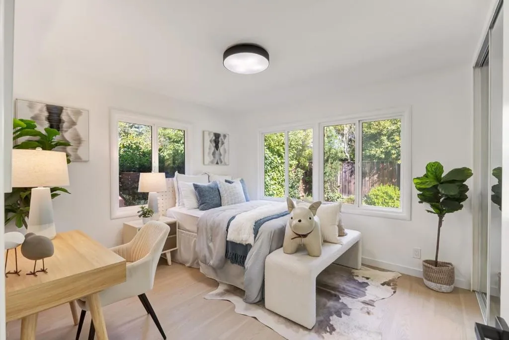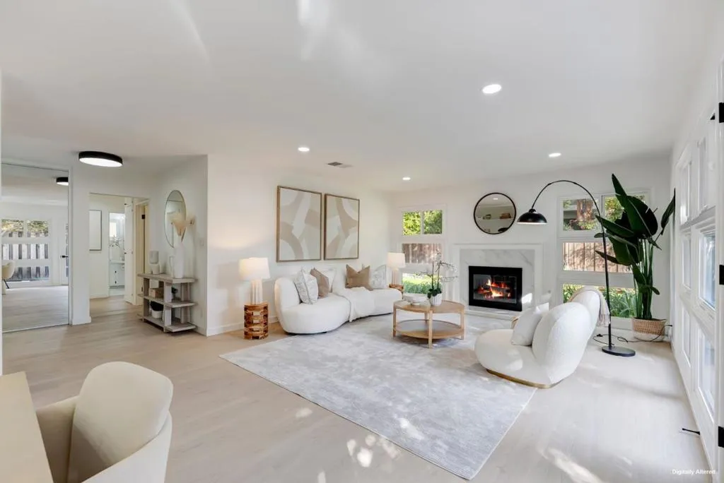 A just-completed whole-home update reimagines this Green Gables home with a fresh, cohesive style and excellent livability. The single-level floor plan has 3 bedrooms and 2 baths plus a spacious family room in addition to the formal living and dining room combination. New luxury vinyl plank flooring extends throughout, complemented by all new lighting, freshly painted interiors, and abundant natural light from updated and oversized windows. The remodeled eat-in kitchen features quartz counters and new appliances, and both bathrooms, including one en suite, have been refreshed with updated surfaces. A fireplace highlights the living/dining room as well as the family room. The wraparound yard offers expansive hardscape and lawn in a private setting, ideal for entertaining and play. The attached 2-car garage has new epoxy flooring. This outstanding location is just blocks from Rinconada Park and the library 1.5 miles to Stanford University and downtown Palo Alto, and has access to acclaimed Palo Alto schools.