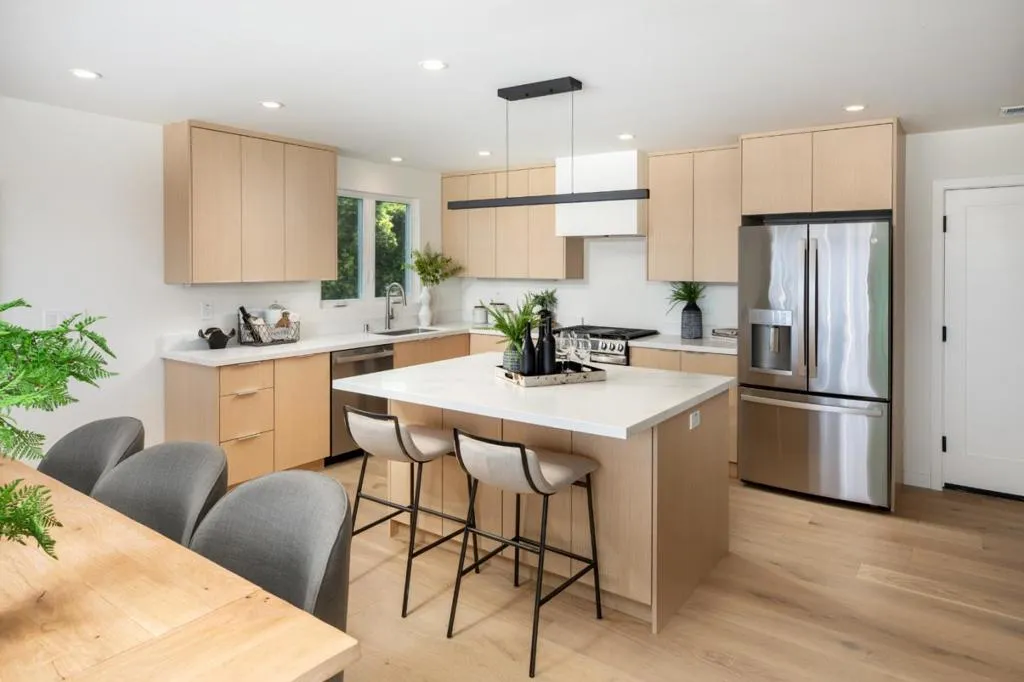 Experience a masterclass in modern design at 1689 Sunnyslope Avenue, a 2,018 sq. ft. residence reimagined for 2026. The heart of the home is a spectacular main-level Great Room bathed in natural light, where nearly every window frames expansive, breathtaking views of the Bay and Mountains. This airy space flows through a 16-foot stackable sliding door to a permitted two-level deck with modern cable railing, perfect for entertaining. The lower level features an intimate family room flanked by two bedroom suites, creating an ideal, private "zone" for older children or guests. Convenience is built-in with a dedicated inside laundry room with ample storage space. Every inch feels brand new, featuring 100% all-new electrical with designer recessed and flush-mount lighting, as well as all-new plumbing, gas lines, and central HVAC. Luxury defines the interior, from wide-plank European white oak floors and Level-5 drywall to a chefs kitchen with designer cabinetry and quartz counters. With three ensuite bedrooms, a private office, and custom-built bathroom vanities, this home offers the peace of mind of new construction with the character of an established Belmont setting.