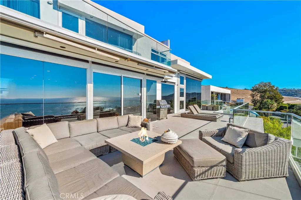 Turn-key and Available beginning June 1st! Breathtaking Panoramic WHITE WATER OCEAN, CITY LIGHTS, and CATALINA ISLAND VIEWS from this stunning Mark Singer-designed Architectural Masterpiece! Situated just above the surf and beautiful North Laguna coastline, this 4 bedroom plus 4 bath (plus private home office) Contemporary home is now offered as a furnished Luxury Rental. Situated in the highly coveted Emerald Terrace area of North Laguna on a quiet street overlooking Laguna's sweeping Coastline with views all the way to Palos Verdes. Take in the picturesque whitewater views of the Pacific by day and city lights after sunset. Open-concept living with soaring Ceilings in the dramatic living and family rooms - with floor-to-ceiling walls of glass that frame the incredible view and create an airy ambiance. A large Gourmet Kitchen has top-quality appliances with a Viking range and a built-in center island offering inspiring views. Spacious Family Room with a cozy fireplace also has coastline views and a state-of-the-art entertainment/flat screen TV. Romantic Primary Suite with fireplace and viewing deck has a huge ensuite bathroom with soaking tub and step-in oversized shower. Three additional en-suite bedrooms on the lower level offer dramatic views. The fitness room opens to an outdoor patio area with a jacuzzi hot tub and outdoor living area. A massage table can be set up for a relaxing treatment overlooking Laguna Beach's lush coastline. Access miles of hiking and biking trails at the end of the street. The property is within walking distance of Crescent Bay beach, Heisler Park, and Gallery Row. The North Laguna location offers easy access to Newport Coast, Crystal Cove, Newport Beach, Laguna Village Shopping, Restaurants, and Laguna Beach's famed Galleries. Rate varies depending on term and season.