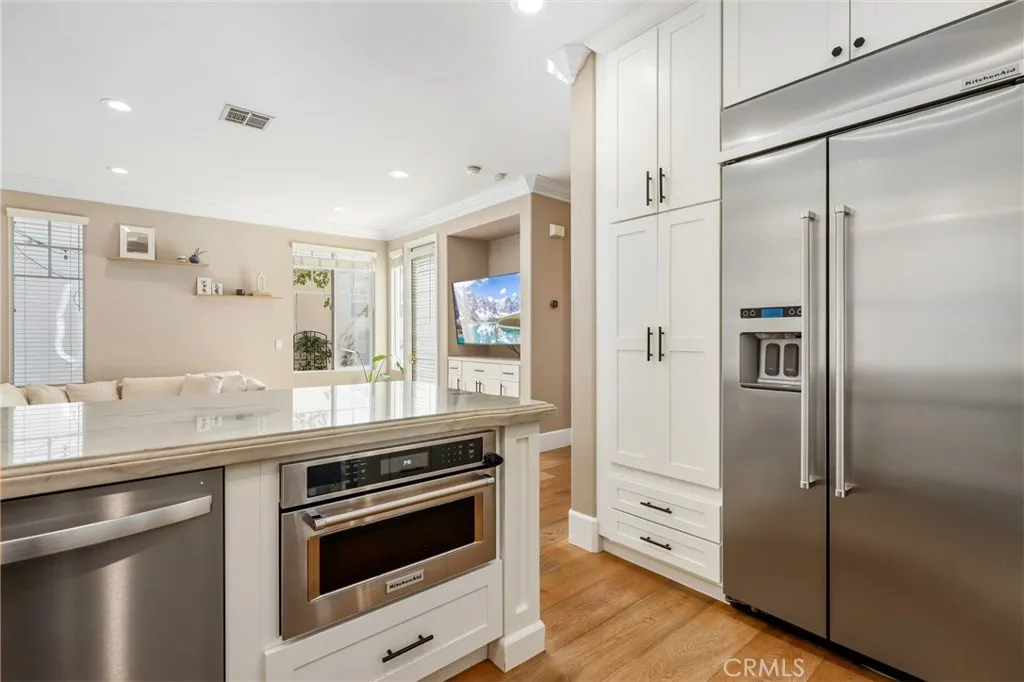 Nestled on a desirable single-loaded street in the heart of Ladera Ranch, this beautifully upgraded residence offers the perfect blend of style, comfort, and functionality. Boasting 1,818 sq. ft. of living space, this 3-bedroom, 2.5-bath home is thoughtfully designed for both everyday living and entertaining. From the moment you enter, stunning hardwood flooring flows seamlessly throughout the home, providing a durable, stylish foundation that complements the open and airy living spaces. The floor plan features spacious living and dining areas that transition naturally into the heart of the home — a stunning, custom-remodeled kitchen. Designed to impress, the kitchen showcases sleek finishes, stainless steel appliances, a charming farmhouse sink, and thoughtful details that elevate both form and function. The downstairs powder bathroom was also recently remodeled. All three bedrooms are located upstairs, offering privacy and convenience. The primary suite serves as a private sanctuary, highlighted by a spa-inspired bathroom with dual sinks, a walk-in shower, custom tilework, and a large soaking tub. A convenient upstairs laundry room adds everyday ease and practicality, while the home has been thoughtfully re-piped with PEX for added peace of mind. Step outside to enjoy true indoor-outdoor California living. The expansive side patio offers ample space for dining, entertaining, or relaxing, while the additional side yard provides the perfect setup for extra storage or a dog run. The home also includes an attached two-car garage with epoxy floors, offering convenience and extra storage. With no homes directly across the street, the single-loaded location enhances privacy and curb appeal, with plenty of parking for friends and family. Ideally situated within close distance to Ladera Ranch Elementary and Middle School, and just moments from the community’s renowned amenities including pools, parks, trails, water park, dog park, skateboard park, and year-round events, this home offers an exceptional lifestyle in one of Orange County’s most sought-after neighborhoods.