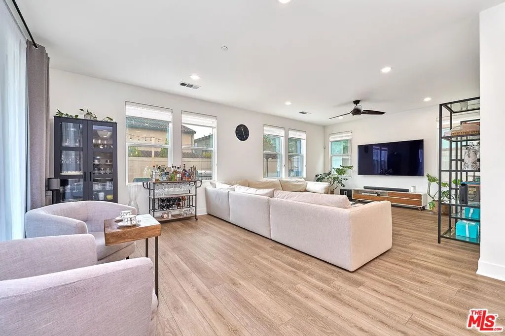Zero Solar Payment! Fully Paid-Off Tesla Solar System + One of the Most Private Lots in Bedford. This extensively upgraded DETACHED end-unit offers exceptional privacy with only one neighboring home and no home across, creating an open feel with abundant natural light and serene mountain and greenery views. Boasting approximately 3,114 sq ft, this thoughtfully designed home features 4 bedrooms and 3 bathrooms (5Beds & 3.75 Baths on title), including a highly desirable main-floor bedroom and full bath, perfect for guests or multi-generational living. The spacious upstairs loft can easily be converted into a fifth bedroom. A standout feature is the fully paid-off Tesla solar system, complete with 24 roof-mounted panels, Powerwall, Backup Gateway, and EV charger providing true ownership, zero solar payments, and substantial energy savings while comfortably running A/C and charging your EV at home. Extensive upgrades throughout include custom countertops, upgraded cabinetry and hardware, crown molding, solid-core doors, premium flooring, custom-made shutters, cased windows, designer lighting, and a fully upgraded kitchen featuring Whirlpool and LG appliances with a wrapped island. The spa-inspired primary bathroom showcases a full-height tile shower and elevated finishes. Additional highlights include epoxy garage flooring with custom storage solutions and professionally designed landscaping and hardscape. Located in the highly sought-after Bedford community, residents enjoy resort-style amenities including multiple pools and spas, a saltwater lap pool, state-of-the-art fitness center, parks, walking trails, dog parks, and a clubhouse. Walking distance to Bedford Marketplace with Starbucks, dining, and more, plus easy access to the 15 Freeway. A rare combination of premium lot, extensive upgrades, and fully owned solar this home truly stands out. Welcome Home! Virtual Tour: https://my.matterport.com/show/?m=9TKvkFU8Z7B