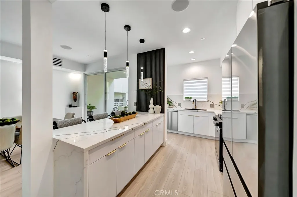 Unlock this exceptional, fully remodeled luxury townhouse in the beating heart of West Hollywood, just moments from the Beverly Hills border and less than a minute from iconic Sunset Boulevard. This stunning nearly 2,000 sq ft, 3-bedroom, 2.5-bath residence has been thoughtfully redesigned with elevated finishes and modern sophistication throughout. World-famous destinations including the Rainbow Bar & Grill, Whisky a Go Go, and The London West Hollywood, are just a short walk away, with Sunset Plaza and Hollywood’s most iconic landmarks minutes from your door—placing you at the epicenter of LA’s vibrant lifestyle, nightlife, and glamour. Step into soaring living spaces with dramatic high ceilings, drenched in natural light and opening to a private patio wrapped in lush greenery. The dining area flows seamlessly to its own balcony, blending indoor elegance with outdoor living. Recessed lighting, designer wall fixtures, LED-lit staircases with smart motion sensors, and a built-in whole-home sound system create a refined yet effortlessly cool ambiance throughout the home. The brand-new European-style kitchen showcases gorgeous countertops and premium, never-used high-end appliances, designed for both everyday living and elevated entertaining. Every bathroom has been completely rebuilt into a spa-like retreat with radiant heated floors, smart toilets, smart mirrors, and cutting-edge shower systems delivering everyday luxury. The primary suite offers a serene escape with a spacious en-suite bath and walk-in closet, while the second bedroom features its own full bath and walk-in closet. Crowning the home is the show-stopping rooftop deck—your private urban oasis—featuring a custom deck, plush artificial turf, and breathtaking panoramic views sweeping across the entire Los Angeles skyline. Twinkling city lights, open skies, and total privacy create the perfect setting for sunset cocktails, entertaining under the stars, or simply taking in the energy of the city from above. A private, fully redone 2-car garage adds rare convenience in this prime location. Turnkey, fully upgraded, and zero work needed—this is not just a townhouse, it’s your front-row seat to Sunset. This is where you stop searching and start living.
