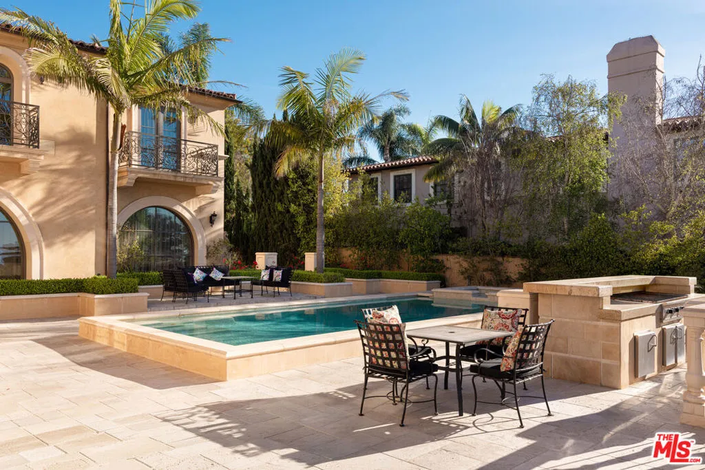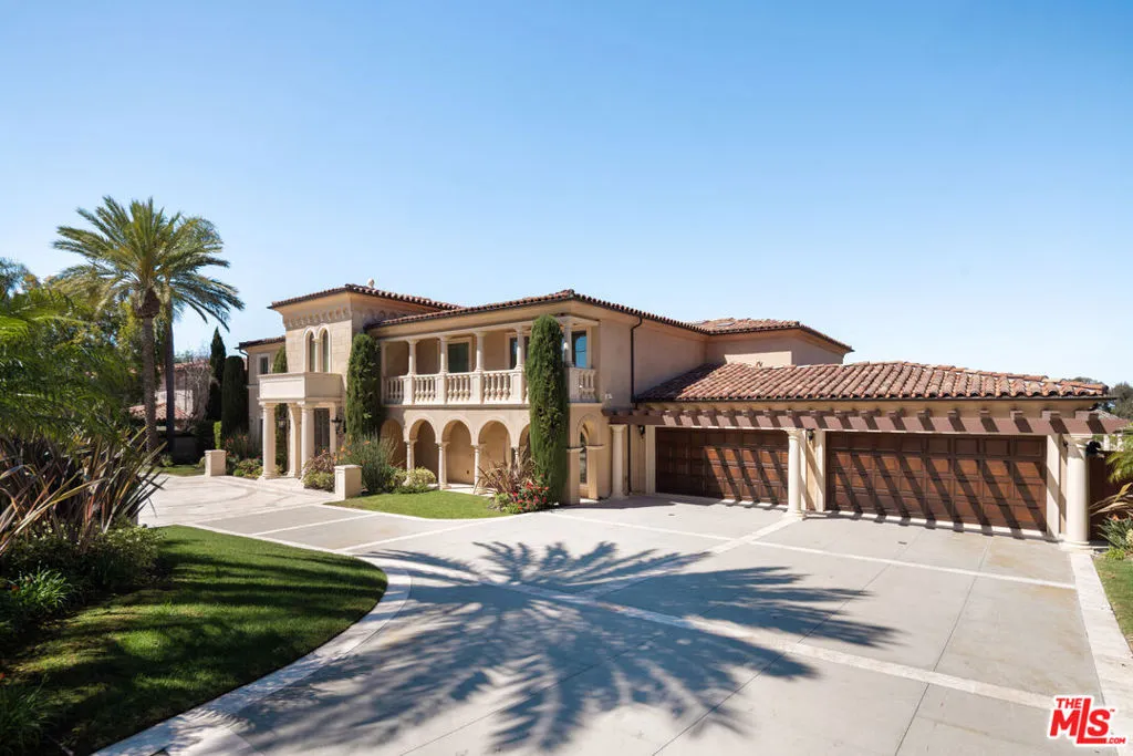 Set on an expansive lot with sweeping ocean vistas, this impressive estate offers approximately 8,600 sq. ft. of living space. Designed for both comfort and entertaining, the home showcases an open-concept layout and a resort-style backyard complete with a pool, spa, BBQ area, multiple patios and balconies, level lawn space, and a private tennis court.A grand entry with a dual staircase welcomes you inside, leading to a refined office/library with custom built-ins, formal living and dining rooms, a versatile bonus room, and a spacious kitchen equipped with granite countertops, a Sub-Zero refrigerator, and a large center island. The adjoining family room features a striking fireplace, a wet bar, and French doors that open to a generous balcony. Nearly every main living space is positioned to capture the stunning ocean views. The primary suite offers a private retreat with its own fireplace, scenic views, balcony access, and a luxurious bathroom featuring a soaking tub and steam shower. Throughout the home, you'll find elegant details such as travertine and wood flooring, soaring ceilings, wainscoting, and French doors. The lower level includes a charming wine room with a tasting area and lounge space, perfect for intimate gatherings. Additional highlights include a four-car garage and a circular driveway for added convenience and curb appeal.