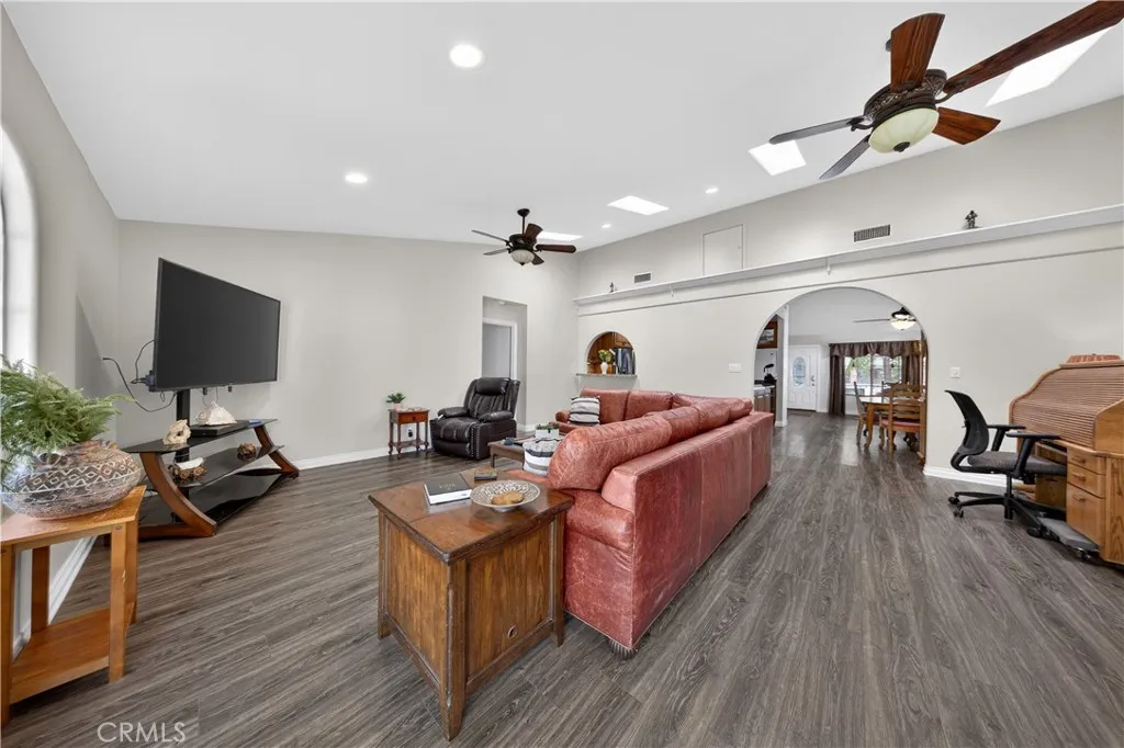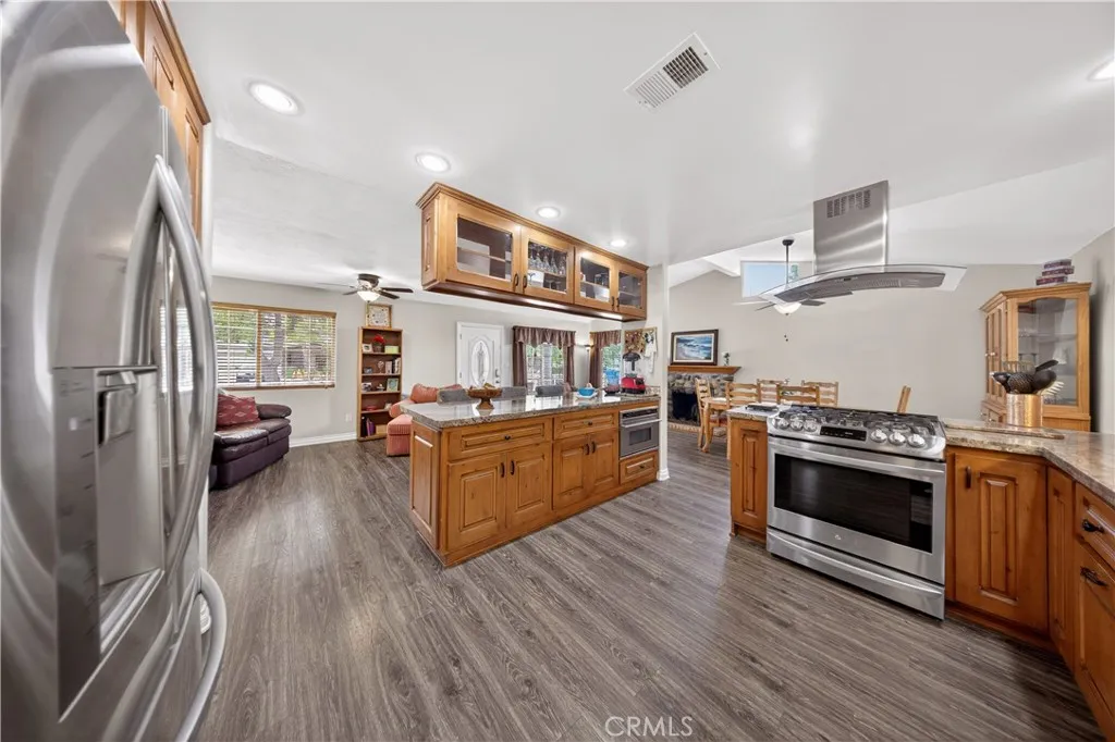Welcome to a home that truly has it all—style, comfort, and the ultimate entertainer’s lifestyle. Step into a beautifully upgraded kitchen featuring custom cabinetry with soft-close doors and drawers, stunning granite countertops, a large center island and 5 range burner stove—perfect for gathering, cooking, and hosting. The open-concept layout flows seamlessly into the dining and living areas, highlighted by warm finishes, abundant natural light, and a charming fireplace that creates an inviting atmosphere. Unwind in the expansive primary suite with a private en-suite bath highlighted by a jacuzzi tub, perfect for relaxing after a long day. Outdoors is where this home really shines. Enjoy your own private resort-style backyard complete with an elevated pool, spacious decking, and multiple areas to relax or entertain. Two covered patios—one equipped with a TV—plus a gazebo create the perfect setup for hosting friends, watching the game, or unwinding year-round. This is truly an entertainer’s backyard. The front yard features a drought-tolerant desert landscape, offering both beauty and low maintenance. For added convenience and functionality, the property includes RV parking with a 30-amp electrical hookup, as well as solar on the roof for energy efficiency and long-term savings. This home blends thoughtful upgrades with everyday comfort—ideal for anyone looking to live, entertain, and enjoy the California lifestyle to the fullest