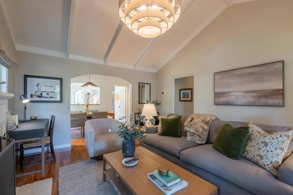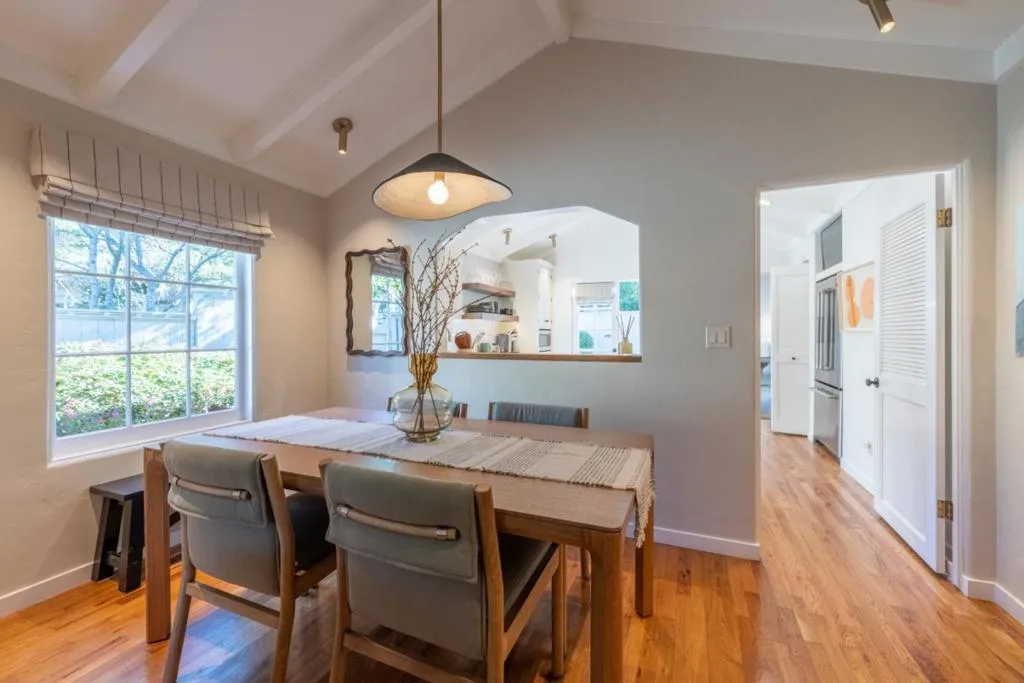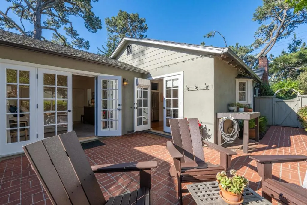 Step through the Dutch door and into a world of timeless enchantment. This 3-bedroom, 2-bathroom cottage captures the very essence of Carmel's "fairytale" charm, where every corner tells a story of comfort and craft. Inside, soaring vaulted ceilings and warm hardwood floors create an inviting sanctuary, bathed in soft coastal light. The heart of the home is a kitchen plucked from a dream, featuring the ethereal glow of Taj Mahal quartzite and the hand-pressed artistry of Zellige tile backsplash. Custom window treatments frame views of the surrounding greenery like living paintings. Retreat to your private, fenced side yard, the perfect place for tea, tall tales, or quiet reflection. The Rare Find: A detached 2-car garage provides modern convenience without breaking the spell of village living, with many possibilities. Discover the magic of a home that feels like a classic poem come to life, a quiet neighborhood just moments to town and the white sands of Carmel Beach.