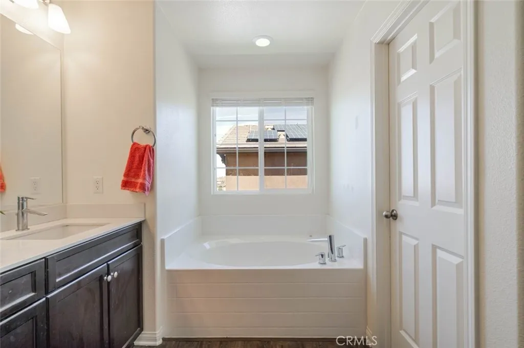 Located on a quiet cul de sac in the highly desirable West Palmdale community of Anaverde, this beautifully upgraded home offers modern efficiency and thoughtful enhancements, including paid solar, a tankless water heater and an electric vehicle charging station in the garage. A welcoming covered front porch invites you into this popular Richmond American Fallon floor plan featuring an open concept design ideal for both comfortable living and entertaining. The main level showcases upgraded flooring, a spacious great room, dining area, and a stylish kitchen equipped with stainless steel appliances, rich Lincoln Maple Java cabinetry, natural stone countertops, and a large walk in pantry. Upstairs features a versatile loft, four spacious bedrooms, including a primary suite with a private bathroom and a generous walk in closet. Two of the secondary bedrooms feature custom TV accent wall mounts, adding a modern designer touch. A full secondary bathroom and convenient upstairs laundry room complete the second level. The front and backyard are fully landscaped with low maintenance design. The backyard offers a covered patio, creating the perfect setting for outdoor gatherings and relaxation.