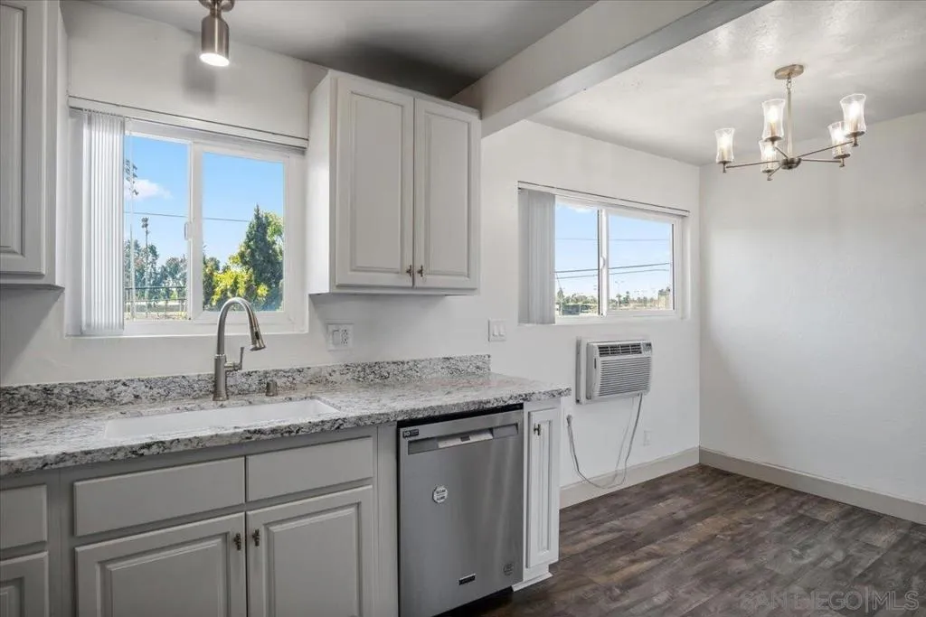 This turn-key home represents an exceptional opportunity for a first-time buyer to enter the market at the most competitive price point for a three-bedroom, two-bathroom residence centrally-located in La Mesa. Practical needs are well-addressed by a two-car garage, an additional off-street parking space in the back, and ample guest parking on the street. Offering a rare sense of privacy, the residence features only one attached neighbor below, with no shared side walls. The interior has been thoughtfully updated with newer flooring and fixtures, fresh paint, modern appliances, stylish granite countertops, and refinished shower tubs, complimented by double-pane windows in the bedrooms and main living area to ensure a quiet and more energy-efficient environment. The large balcony off the living room provides a peaceful space to enjoy views of the surrounding mountains and the community pool, with bedroom views of the lush foliage. The location offers great convenience, situated within walking distance of local shopping, diverse eateries, Boy's & Girl's Club, Highwood Park, and highly regarded schools. This includes the prestigious Helix Charter High School, widely recognized for academic excellence and storied athletic programs. This home combines modern updates with a prime location, making it the ideal starter property for those seeking both value and quality.