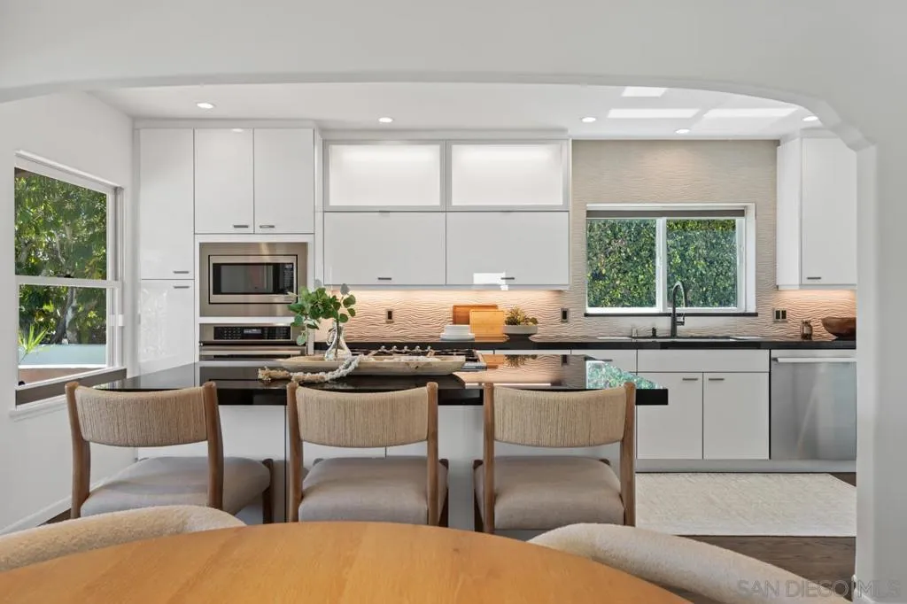 Nestled within the idyllic enclave of Kensington, a charming neighborhood in San Diego known for its distinct village atmosphere, this beautifully restored 1937 Spanish residence blends timeless architectural character with refined modern living. Situated on an expansive 15,000+ square-foot lot, the single-level home offers approximately 1,554 square feet, featuring three bedrooms and three elegantly renovated bathrooms, all thoughtfully updated while preserving the home’s classic Spanish charm. The home has been meticulously renovated throughout and features a stunning open kitchen with premium Thermador appliances, including a wine refrigerator and refrigerator drawers deal for effortless entertaining. The kitchen flows seamlessly into the dining and living areas, where a welcoming gas fireplace creates a warm gathering space. Extensive upgrades include beautifully remodeled baths with designer tile and fixtures, updated plumbing and electrical, water softener system, EV charger, and an electric driveway gate. Outdoors, the property transforms into a private retreat with three inviting backyard decks, a fully fenced yard, and low-maintenance landscaping enhanced by dramatic exterior lighting. A converted garage studio with a dry kitchen opens through sliding doors to a beautiful Balau wood deck, creating exceptional indoor-outdoor living. Just moments away, Kensington’s vibrant village offers cafés, restaurants, boutiques, markets, dog park, children's playground, banking, salons, and a village library. Over the past several years, ( 2018-2026) the residence has been thoughtfully upgraded with extensive improvements throughout. Interior enhancements include updated plumbing and electrical, fresh crisp white interior paint, remodeled primary and guest baths, an updated third bath, refinished flooring, and a fully renovated kitchen featuring premium Thermador appliances. The garage has been converted into a versatile office and entertaining space with a dry kitchen and large sliding glass doors opening to the outdoors. Additional upgrades include a tankless hot water heater, concrete driveway, electric gate, EV charger, whole-house water softener, new fencing, and all-new landscaping. Outdoor living is enhanced with a Balau wood deck, patio pavers, outdoor sink, sidewalk trees, and a side gate with a dedicated dog run. Welcome Home!