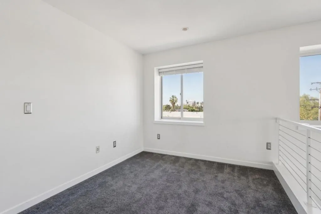 Experience elevated urban living in this top-floor end-unit loft in Downtown San Jose, offering street-level/elevator access and 1,204 sq ft of thoughtfully designed space. With a south-facing orientation, this home is filled with natural light from expansive windows and dramatic 20+ ft ceilings, creating a bright, open feel. Move-in ready with fresh paint, stainless steel appliances, a cozy gas fireplace and interior washer/dryer. The open-concept layout features floor-to-ceiling windows and a loft ideal for an office or media space. A flexible front room serves as a second bedroom or office with a full bath. A large outdoor patio highlights views of the west hills. The primary suite includes a walk-in closet, separate vanity, and glass shower. Residents enjoy desirable community amenities, including secure building access, elevator service, a gated garage with guest parking, assigned parking spot, pool and spa, and a fully equipped fitness center. Conveniently located close to San Pedro Square, Japantown, SJSU, Caltrain, VTA, major highways and SJ Airport.