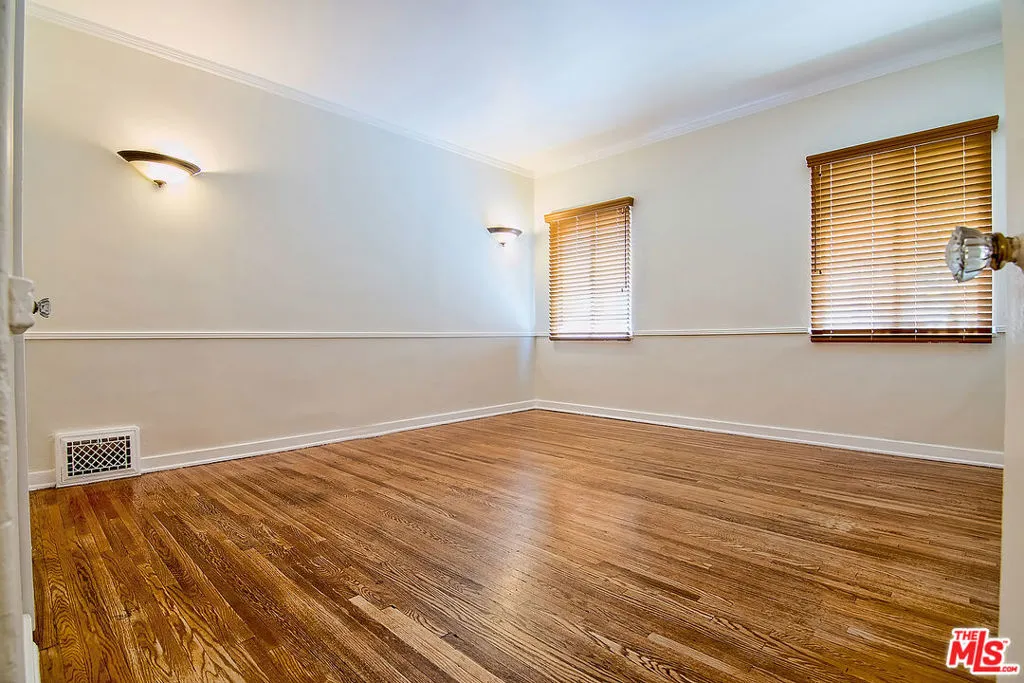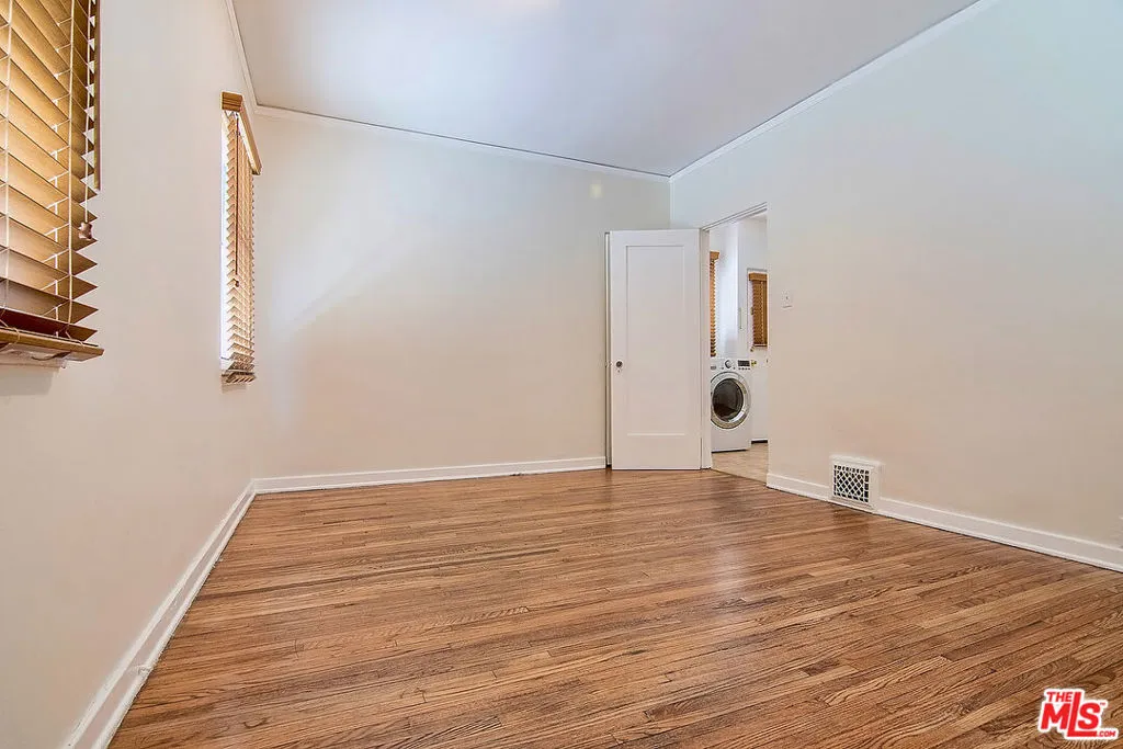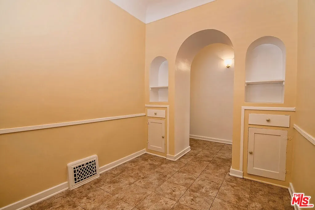 Charming, spacious 3-bedroom, 2-bathroom lower duplex unit on a beautiful tree-lined street in prime Miracle Mile. Character details include gleaming original hardwood floors, tray ceilings, and arched doorways. The kitchen features granite counters, a double stainless steel sink, and newer appliances, including a dishwasher, washer, and dryer. A separate laundry room, breakfast room, and dining room or den feature French doors that lead to a large private patio. Central heat and A/C, gas fireplace, walk-in closets. A rare find!