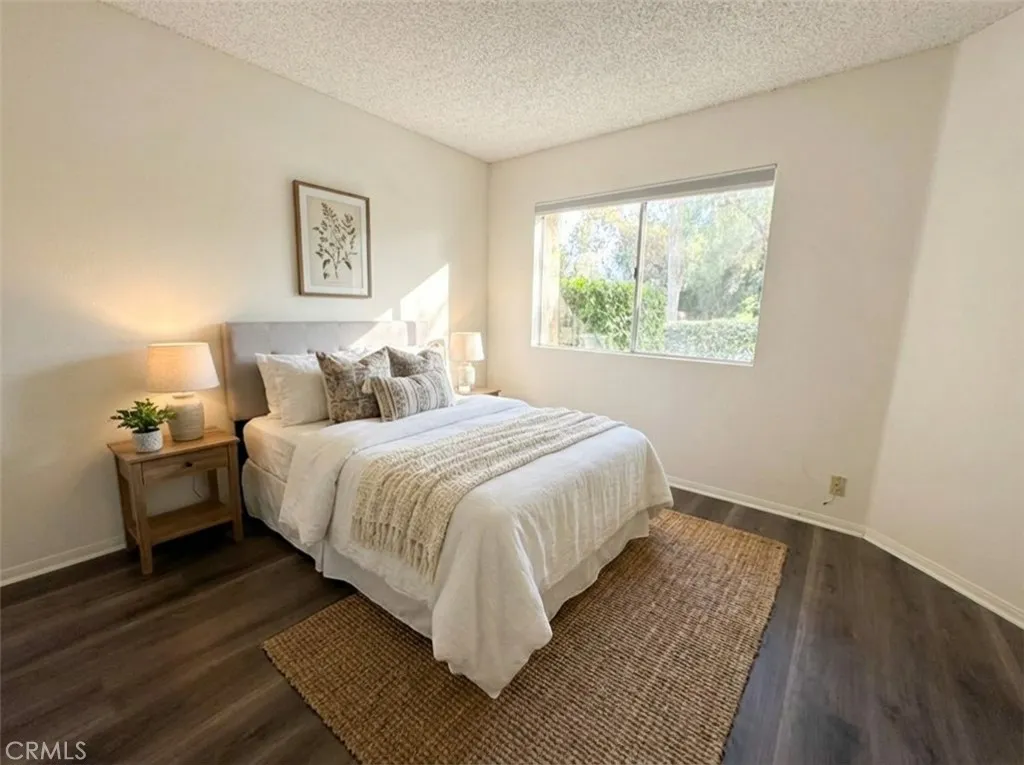 Charming three-bedroom, three-bathroom townhouse located within walking distance to UC Irvine and the University Shopping Center. The floor plan includes one bedroom and full bathroom on the main level, along with two primary suites upstairs, each with its own en-suite bathroom. Vaulted ceilings enhance the living area, as well as laminate and tile flooring throughout. The kitchen features stunning white cabinetry, quartz-style countertops, and appliances including a new electric stove, new microwave, dishwasher, and refrigerator. Indoor laundry with washer and dryer included, along with central heating and air conditioning. The property includes a private enclosed patio accessible from the main living area. Parking for up to three cars included. Amenities include pools, basketball courts, tennis courts, BBQ areas, and parks. Located within the University High School district of the award-winning Irvine Unified School District. Some images have been virtually staged for illustrative purposes only.
