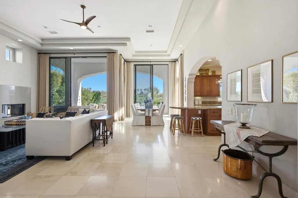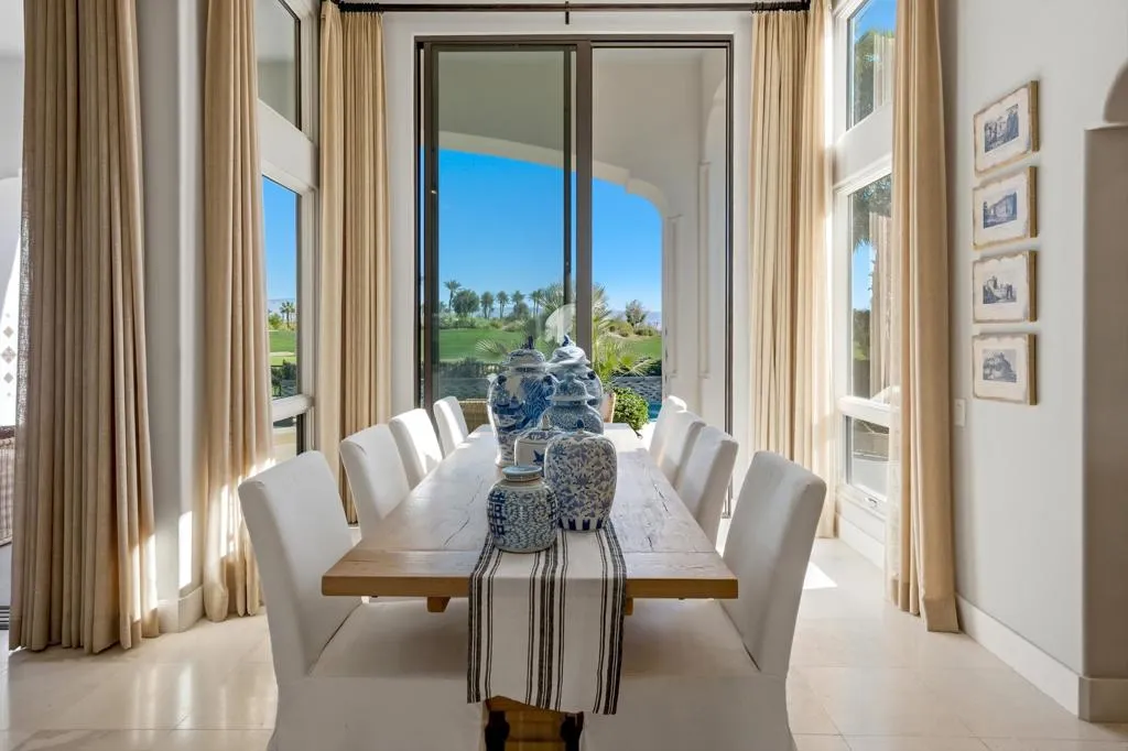 Located behind the gates of Andalusia Country Club, this exquisitely furnished 3,177 sq. ft. residence offers 4 bedrooms, 5 bathrooms, and a private detached casita, blending timeless desert elegance with modern comfort. Thoughtfully designed with a refined open-concept floor plan, the home showcases expansive living spaces that flow effortlessly from indoors to out - ideal for both intimate gatherings and unparalleled entertaining. Positioned along the 6th fairway of the Rees Jones designed course, the property captures serene golf course vistas while preserving a sense of privacy and tranquility. Outdoor living is equally exceptional, featuring a resort-style backyard complete with a pool, built-in BBQ, and fire pit - creating an inviting setting for both relaxed evenings and elevated entertaining. A spacious private courtyard offers an additional layer of seclusion and charm, perfect for enjoying quiet mornings or welcoming guests in a more intimate setting. Each bedroom serves as a luxurious retreat, complete with its own en-suite bath, while the detached casita provides a refined and private experience for visitors. Every detail has been curated to deliver a seamless experience, making this residence an exceptional opportunity to enjoy the finest in desert living. Come live the life you've always imagined!