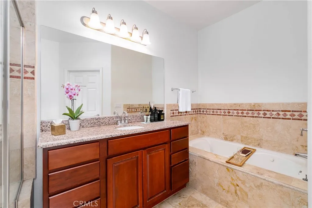 Rare End-Unit Gem in the Heart of Northridge Experience the pinnacle of luxury living in Northridge’s highly sought-after Vantaggio community. As a coveted end unit, this home is flooded with natural light from extra windows on three sides, creating a bright and airy sanctuary that interior units simply can't match. Premium Interiors: The main level is a showcase of elegance, featuring rich hardwood floors, sleek granite countertops, and premium maple cabinetry. The open-concept design flows seamlessly into the primary suite, which serves as a true retreat with a deep spa tub and a generous walk-in closet designed for ultimate relaxation. Standout Features: Direct-Entry 3-Car Garage: A rare find that offers incredible space for vehicles, storage, or a home gym. Private Laundry Room: Added convenience with a dedicated space for chores. Low-Maintenance Luxury: Your HOA covers water and maintenance, giving you more time to enjoy life. Community Amenities: Rest easy with the security of a gated entry and enjoy resort-style living with access to the sparkling community pool, spa, and professional BBQ area—perfect for weekend entertaining. Move-in ready and filled with light, this is the one you’ve been waiting for! More professional photos are coming soon!