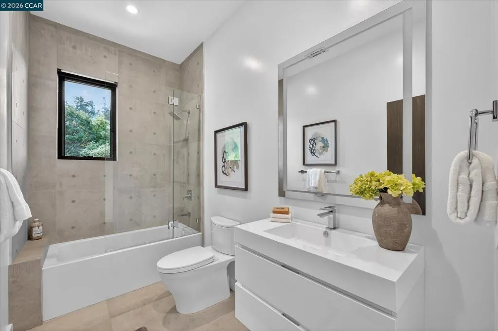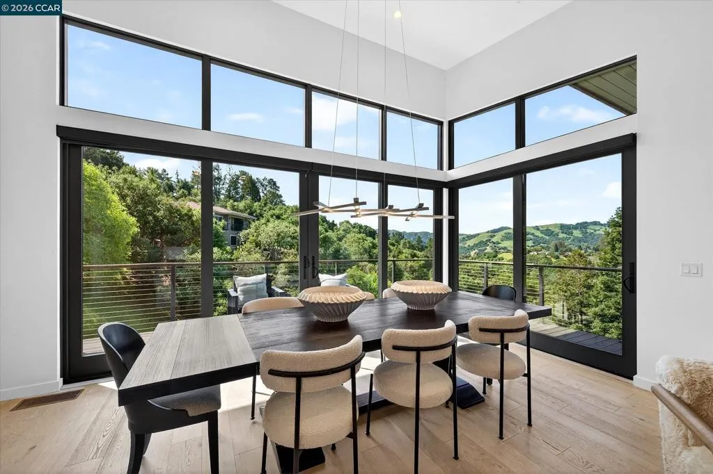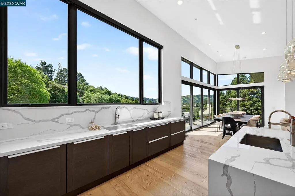 Stunning contemporary state of the art home built in 2020 with gorgeous panoramic views and exceptional craftsmanship throughout. Approximately 3788 sf set on a .47-acre lot with 5 bedrooms and 4.5 baths, including a private 1 bedroom, 1 bath in law apartment with its own outdoor entry plus a main level primary suite and lower-level family room serving the three-bedroom wing. Dramatic great room with soaring 14-foot ceilings, floor to ceiling windows, linear gas fireplace and designer lighting opens to a European inspired gourmet kitchen with premium appliances and custom finishes. Multiple bamboo decks, spectacular views, large level yard, two car garage and minutes to Highway 24. Top schools include Glorietta Elementary, Orinda Intermediate and Miramonte High School.