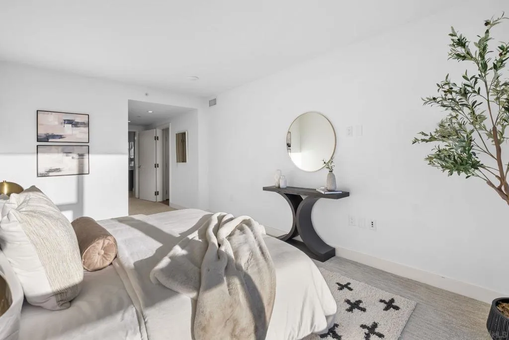 Welcome to Savina Residence 609, a west-facing 2-bedroom, 2-bath home showcasing exceptional bay and city views from every room. This thoughtfully designed residence features an open-concept layout with a spacious great room that easily accommodates both living and dining, all framed by expansive windows and natural light. The kitchen offers bar seating and flows seamlessly into the main living area, making it ideal for both everyday living and entertaining. The primary suite is generously sized and features a massive walk-in closet, while the second bedroom also enjoys sweeping views, creating a bright and elevated living experience throughout. This property comes with 1 parking space and 1 storage space. Additional highlights include one assigned parking space and a well-balanced floor plan that maximizes both functionality and comfort. Savina residents enjoy over 24,000 square feet of resort-style amenities, including a stunning lobby with concierge, business lounge, and a state-of-the-art fitness center with outdoor yoga terrace. Relax and recharge in the spa with sauna and steam room, or unwind on the pool terrace featuring cabanas, fire features, and communal dining areas. Additional amenities include a social lounge with chef’s kitchen and billiards, pet retreat with dog washing station, bike tune-up station, EV charging, and secure resident access. Experience elevated coastal urban living in one of Downtown San Diego’s most sought-after communities.
