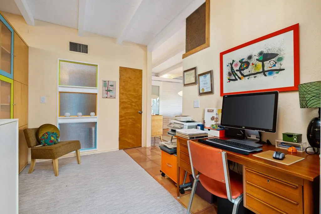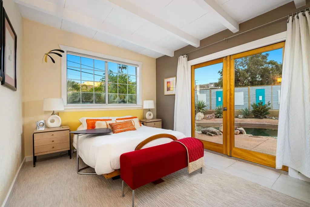 Here's your opportunity to own a beautiful 1958 Mid-Century home high up in the cove. This home is tucked back off the main road down a quiet alley. First time on the market in almost 30 years. It has been lovingly updated. It offers three bedrooms with three bathrooms including a stunning primary retreat with its own fireplace and vaulted ceiling. Rainforest marble steals the show here! There is an office/work area at the entry to the suite. The backyard has a beautiful pool and a large spa. Plenty of room for outdoor entertaining. There is a large separate laundry room with plenty of storage. The sellers are offering a $10,000 credit to the buyer at closing to use as they wish. Come see this home soon!