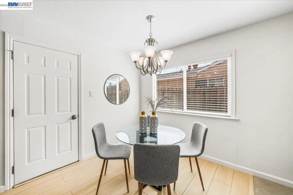 Situated in one of Warm Springs most desirable neighborhoods, this well-maintained East-facing home offers an exceptional blend of comfort, style, and long-term value. Ideally located next to highly regarded Warm Springs Elementary, the home sits on a premium corner lot with beautiful curb appeal, featuring a lush lawn, roses, rock accents, and fresh mulch. Inside, the light-filled layout includes an inviting family room with a large window overlooking the backyard. The updated kitchen features luxury vinyl plank flooring, natural shaker cabinets, granite countertops, stainless steel appliances, and a cozy breakfast nook with a brushed nickel five-globe chandelier. The home offers three bedrooms and one full bath with potential to expand. Recent upgrades include fresh interior and exterior paint, new designer carpet, LVP flooring in entry, nook and kitchen, mostly raised six-panel doors, and dual-pane windows. A two-car attached garage adds convenience. The spacious backyard features a covered patio and ample room for lawn, garden, or customization perfect for indoor-outdoor living. Great location w/easy access to freeways 680, 880, and 237 as well as Warm Springs BART.