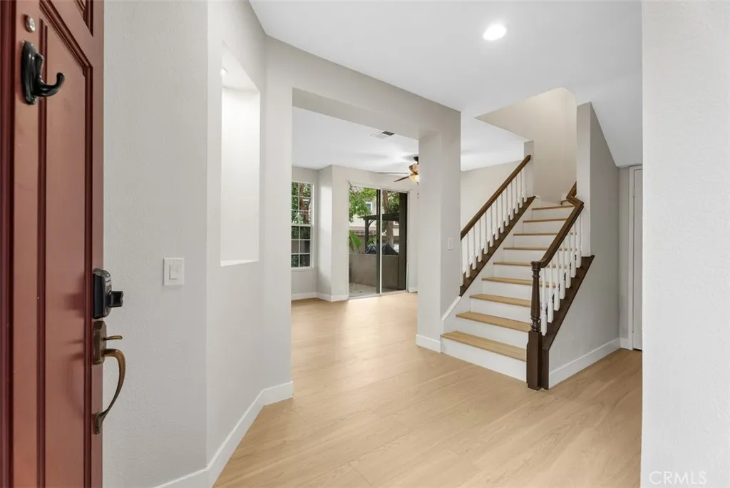 Beautifully remodeled townhouse near excellent schools. No detail was overlooked with this thoughtful renovation. New plank floors throughout, newly tiled showers and floors, new solid cabinetry and designer Quartz countertops in kitchen and all bathrooms, newly tiled family room fireplace, fresh paint, and more. Spacious and well planned with 2 Bedrooms plus a loft, soaring ceilings and 2 1/2 bathrooms. Direct garage access, a lovely serene patio, and community pool. 0.1 miles to Arroyo Vista school and park. Come and see this gem in the heart of Ranch Santa Margarita!