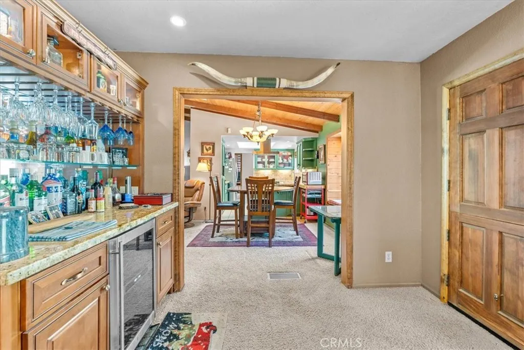 I FOUND YOUR NEEDLE IN A HAYSTACK!! CHECK OUT THIS SINGLE STORY GEM WITH 5 BEDROOMS, 3 BATHROOMS, 2 CAR GARAGE AND CARPORT AND A FRONT YARD THAT'S LIKE A PARK!!! A/C, multiple fireplaces and more parking than you shake a stick at! Multiple primary suites, vaulted ceilings, skylights, open beam features and knotty pine tongue and groove ceilings in the living room create Mountain vibes while giving turn key feelings! Large indoor laundry room, updated kitchen finishes annnndddd....a bonus Den for entertaining or game day!! This home is situated in the heart of the Village, with a quick 10 minute walk to the center of town and all it has to offer!! Not too far, but far enough, from the Highway for easy access no matter the season. Surrounded by second gen Ponderosa Pines, the front yard also offers an awesome covered front porch, built in bench seating, drip system, waterfall pond, mature fruit trees and a neatly paved brick meander through all of the bulbs and hardy greenery! Well loved and implacably maintained, large laundry room, and bonus storage area down below with concrete for the Holiday decor!! All of this, all on one story, with a story book front yard and THE PERFECT BLEND of form and function create your once in a decade listing, all priced appropriately for a house of this caliber! Friendly neighbors, turn key conditions all in the picturesque village of Wrightwood!!