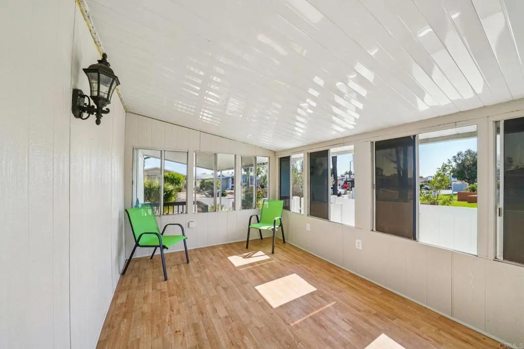 Welcome to an elegant and inviting retreat in the highly desirable 55+ community of Golf Knolls. This land-owned manufactured home has been thoughtfully upgraded and meticulously maintained, offering a refined yet comfortable living experience. Enjoy tranquil mornings on the charming front porch or relax in one of two sun-drenched sunrooms, perfect for quiet moments or effortless entertaining. The interior showcases new windows, updated flooring, and a beautifully refreshed kitchen with generous counter space, complemented by both a spacious living room and separate family room, as well as a formal dining area for more elevated gatherings. Outdoors, the private setting is enhanced by vinyl fencing and a mature lemon tree, creating a serene and polished atmosphere. Additional highlights include an accessible ADA ramp, recent bracing, and a permanent foundation with a recorded 433A certificate, providing both quality and peace of mind. Ideally situated adjacent to the community clubhouse and sparkling pool, with parking for up to four vehicles, this residence offers a sophisticated blend of comfort, convenience, and lifestyle.