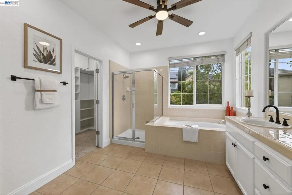 Located in the highly sought-after Dublin Ranch community, this beautifully updated 4-bedroom, 3-bath residence is set on an amazing lot and offers a thoughtfully designed floor plan with a full bedroom and bathroom on the main level—ideal for guests or multi-generational living. Freshly painted interiors and upgraded recessed lighting with ambient settings enhance the home’s bright and inviting ambiance, while soaring ceilings in the living and family rooms create an open, airy feel. Elegant wainscoting adds a refined touch of character, complementing the home’s modern yet timeless appeal. The spacious kitchen is designed for both everyday living and entertaining, featuring an island, stainless steel appliances, and seamless flow into the main living areas. Upstairs, you’ll find well-proportioned bedrooms along with a generous primary suite designed for comfort and relaxation. The backyard offers a peaceful outdoor retreat with mature fruit trees and blooming flowers—perfect for entertaining or unwinding in a private setting. Ideally located near shopping, dining, and with convenient access to I-580/I-680 and BART, this home also enjoys close proximity to scenic walking trails and Emerald Glen Park, offering open green space and a variety of recreational amenities. An exceptional opportunity to own a well-appointed home in one of Dublin’s most desirable communities.