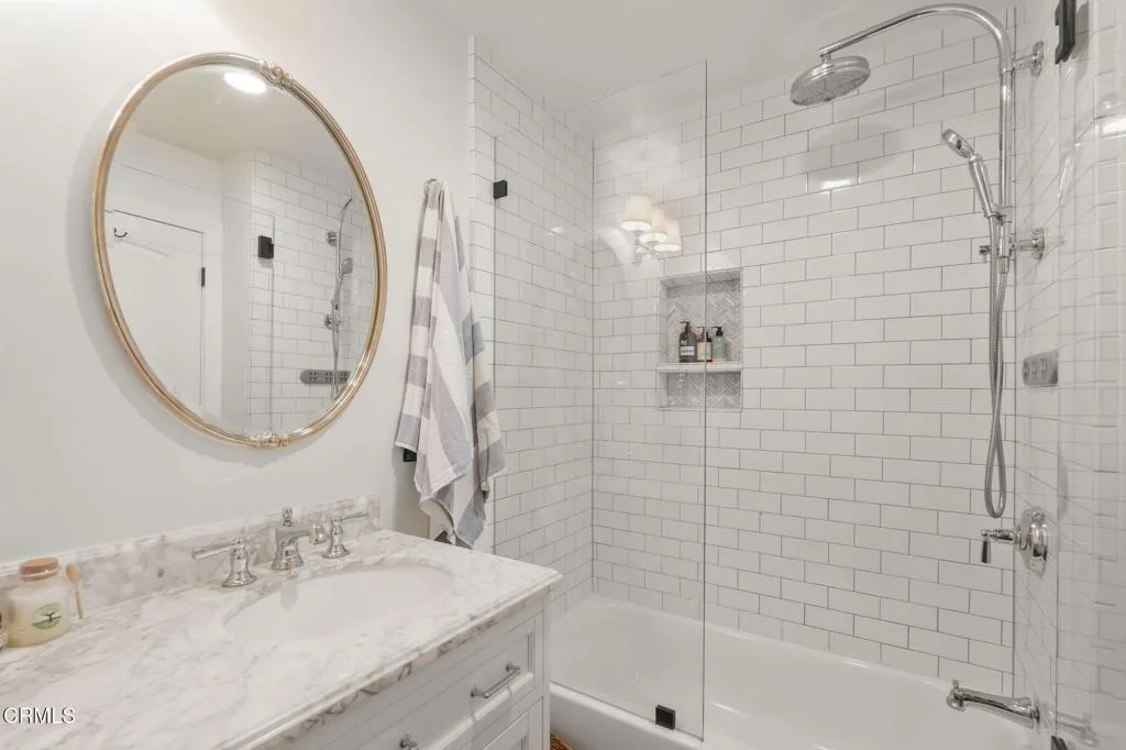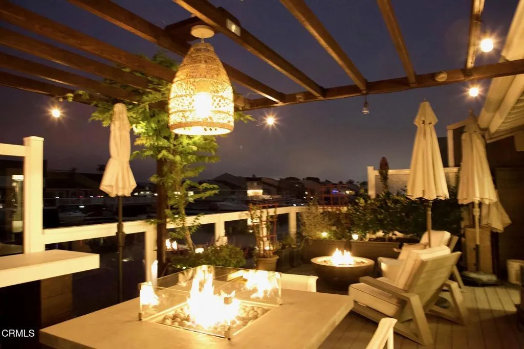 This is your Oasis--a breathtakingly reimagined coastal retreat where luxury, serenity, and effortless living exist in perfect harmony.From the moment you arrive, the fully redesigned exterior and enchanting courtyard set the tone. A sleek new driveway and widened cement walkway lead through a custom wood gate designed for the ocean environment. Professionally curated landscaping, meticulously maintained, is enhanced by bronze low-voltage lighting, custom pillars with downlighting, an elevated arbor, and two remote-controlled fountains--creating a stunning blend of water, light, and ambiance.The garage has been thoughtfully transformed into a functional extension of the home, featuring attic storage with built-in flooring, a split AC/heat unit, updated lighting, a smart attic fan, privacy shades, and integrated sound.Outdoor living feels like a private resort. Enjoy a custom outdoor shower with hot and cold water, full privacy shades, and expandable doors--perfect after the beach. The remodeled Trex deck offers multiple entertaining spaces, including a built-in kitchen, BBQ, fire table, fire pit lounge, pergola with soft lighting, and outdoor heater. Take in water and Topa Topa mountain views, all just minutes from the beach, harbor, dining, and shopping.Inside, durable tile flooring runs throughout, offering both style and easy maintenance. The open-concept kitchen features elegant quartz countertops, gold accents, high-end appliances, a double dishwasher, wine fridge, and a large custom island. A whole-house water filtration system adds everyday comfort.The living and dining areas showcase custom built-ins, designer moldings, ambient lighting, natural wall coverings, and a vaulted ceiling with woodwork. Smart features include integrated sound, Lutron lighting, security system, and Nest thermostat.The primary suite is a peaceful retreat with custom paneling, a spacious closet, and a spa-like bath featuring marble double sinks, a Toto bidet, and a custom walk-in shower. A private loft offers incredible views, while the secondary suite provides comfort and privacy.Complete with an updated dock, Trex ramp, and floating platform, this home is the ultimate coastal lifestyle--where every day feels like a vacation.
