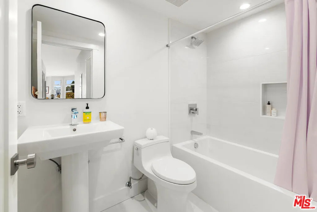 Located at 2817 3rd Street #1, this contemporary condo is set in a private four unit building just blocks from the beach and moments from Main Street and Abbot Kinney. The three bedroom residence offers over 2,000 square feet of light filled living space with ocean views throughout. The open living and dining area features lofted ceilings, a large skylight, fireplace, built in shelving, and a bay window seat. The gourmet kitchen is equipped with Bertazzoni appliances, a wet bar, wine storage, and a pantry. A flexible third bedroom, office, or gym opens to an oversized west facing deck with ocean views and can also be accessed from the living room. The two additional bedrooms each feature en suite baths and spacious walk in closets, including a primary suite with its own private patio. Upstairs, two mezzanine areas, a roof deck, and a bonus room with potential for a fourth bedroom add to the home's versatility. Modern finishes throughout include quartz countertops, marble baths, composite hardwood floors, and in unit laundry.