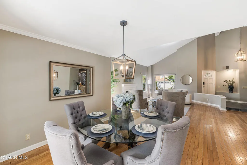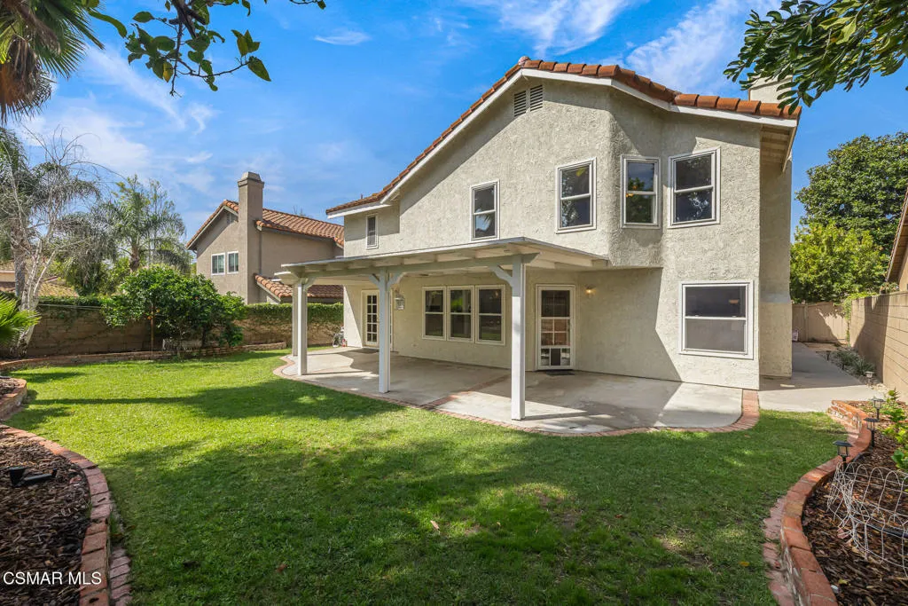 Welcome to The Willows, one of Moorpark's most sought after communities, where tree lined streets and a welcoming neighborhood setting create the perfect place to call home. Ideally located near Moorpark High School and Mountain Meadows Elementary, this beautifully upgraded four bedroom, three bath home offers 2701 square feet of comfortable living with soaring vaulted ceilings and an abundance of natural light throughout. The remodeled kitchen is the heart of the home, featuring a stunning oversized quartz island, stainless steel appliances, a designer tile backsplash, generous seating, and abundant storage, perfect for everyday living and entertaining. All bathrooms have been thoughtfully updated with a fresh designer look, while a desirable downstairs bedroom adds flexibility for guests or a home office. Upstairs, you will find two spacious secondary bedrooms along with a luxurious primary suite complete with a sitting area, expansive dual walk-in closets, and a beautifully reimagined bath that reflects both comfort and elegance. The home also features a thoughtful blend of real hardwood flooring, plush carpeting on the stairs, and durable luxury plank vinyl throughout. Additional highlights include double pane windows, upstairs laundry, and a three-car garage. Enjoy summer days at the community pool and spa just moments away, making this not just a home but a lifestyle you will be glad to call your own.