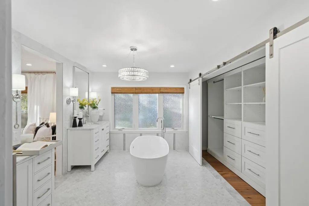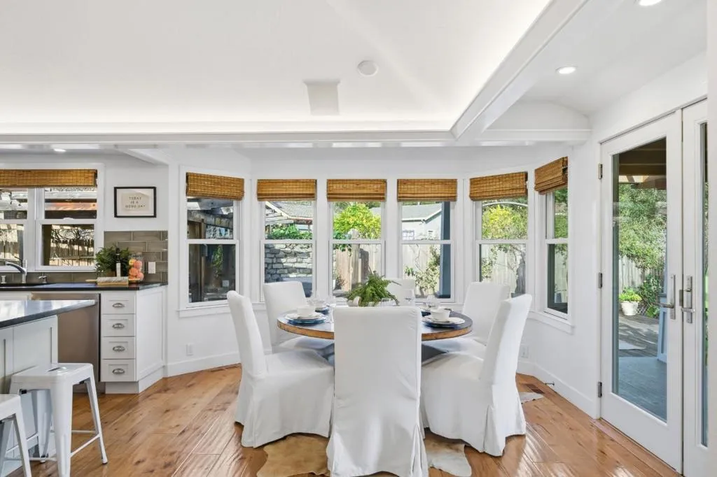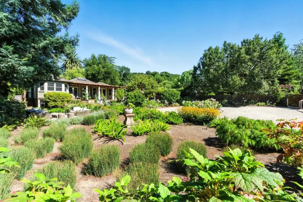 Hidden gem on nearly half an acre behind a private gated entry with professionally landscaped grounds, mature orchard trees, & year-round blooms. The exceptional single-level 3 bedroom, 3 bath 1,842 sqft main residence was completely renovated in 2017 & features an open, light-filled floor plan with skylights & French Oak floors throughout. The entry opens to a spacious living room with custom built-ins & designer lighting, flowing seamlessly into the chef's kitchen with a large center island, Thermador appliances, & dining area. Multiple glass doors open to a stunning 400+/-sq ft lanai, creating effortless indoor/outdoor living. The primary suite retreat with spa-like bath featuring Italian porcelain tile, mosaic marble floors, chandelier, & custom closet. Outdoor living spaces include multiple seating areas, an outdoor kitchen, & gas fire pit, ideal for entertaining year-round. A detached garage offers approx. 687 sqft of flexible space for guest suite or home office, plus an additional 600+/- sqft basement. Additional features include a private well & potential to add an ADU or expand further. Ideally located moments from Village shops & restaurants, hiking & biking trails, Edgewood Park, Stanford University, major tech campuses, & Interstate 280. Excellent Woodside schools.