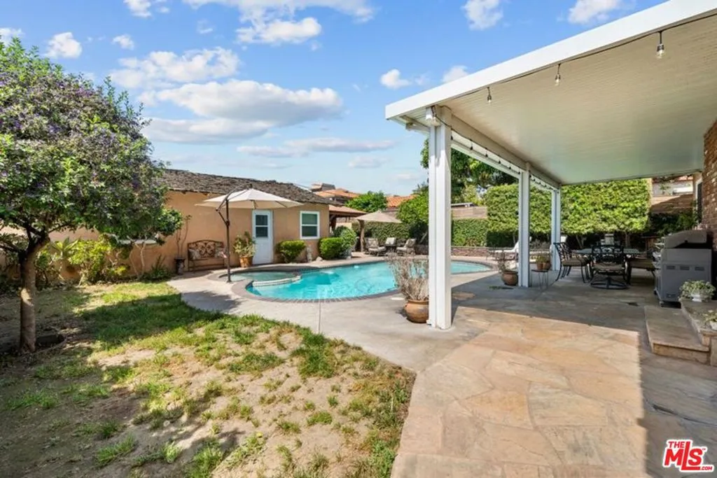 Welcome to this beautifully updated entertainer's dream in the heart of South Gate! Boasting 2,084 square feet of living space on a massive lot of over 8,000 square feet, this property has room for it all. Currently configured as a spacious 2-bedroom, 2-bathroom layout with generously sized bedrooms and abundant closet space offering the seamless option for an easy 3rd-bedroom conversion to suit your growing needs. Step inside to discover a bright, flowing floor plan enhanced by top-to-bottom renovations, including fresh interior paint, new flooring, new interior doors, elegant new window shutters, and energy-efficient dual-pane windows. The home features a formal living room and a large formal dining room, perfectly complementing the beautifully updated kitchen that boasts brand-new cabinetry and pristine countertops.The true highlight of this property is the expansive den, an ultimate entertainer's paradise complete with a cozy fireplace and a built-in bar. From here, open the doors and step out into your private backyard resort. A newly plastered, sparkling pool outfitted with brand-new equipment awaits, alongside a dedicated pool cabana that is ready for warm summer days. You can easily host unforgettable family gatherings and BBQs under the new patio cover, accented by gorgeous flagstone flooring that ties the whole outdoor oasis together.Enjoy year-round comfort and peace of mind with a brand-new central HVAC system. Furthermore, the property features an expansive oversized custom designed three-car garage with a separate cemented area that includes plumbing already set up, presenting incredible potential for an Accessory Dwelling Unit (ADU) for extended family or passive rental income. Conveniently located close to fantastic shopping, local parks, and schools, this turnkey property perfectly captures the very best of South Gate living. Don't miss this rare opportunity to make this spectacular home your own!
