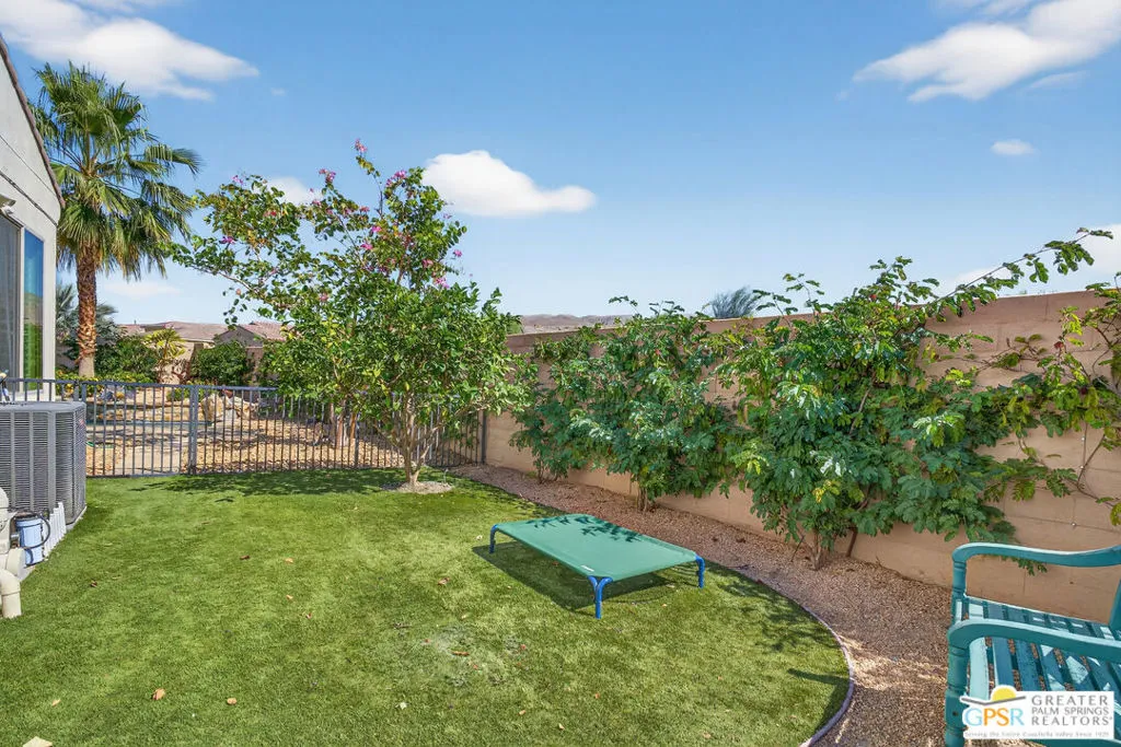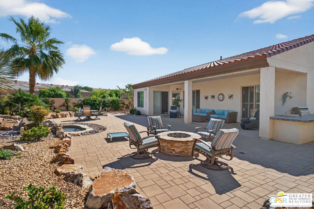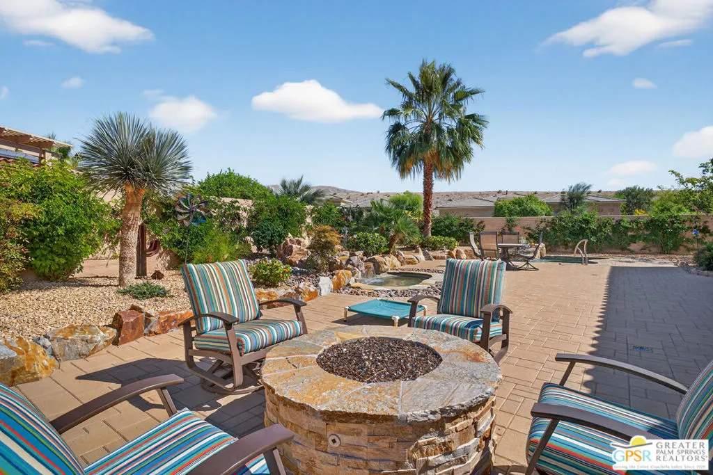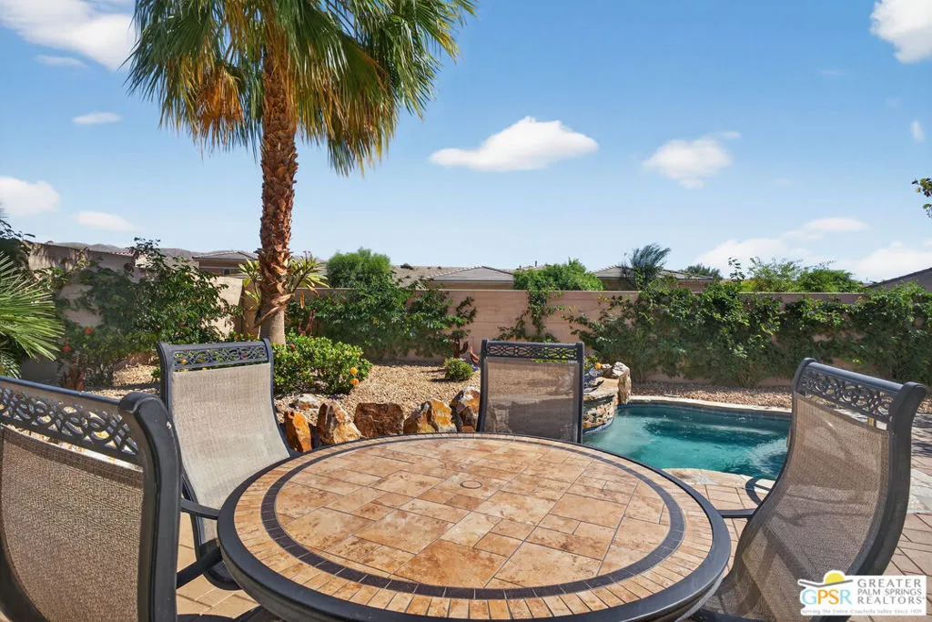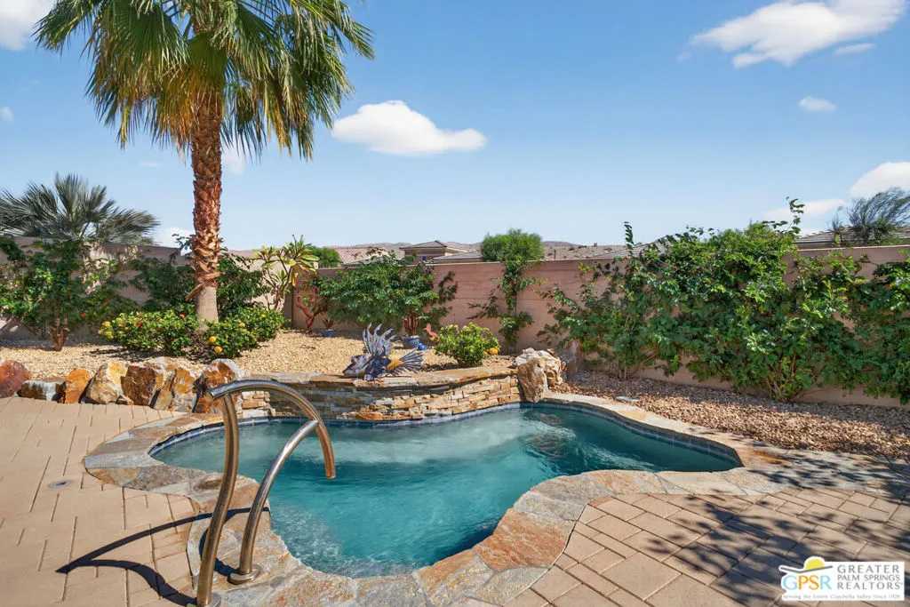 Welcome to elevated desert living in the highly desirable 55+ community of Sun City Shadow Hills where resort-style amenities and an active adult lifestyle come together. This beautifully upgraded 3-bedroom, 2-bath home offers 1,756 sq ft of open-concept living designed for comfort, ease, and entertaining. Tile flooring throughout common areas provides a clean, low-maintenance environment, while the upgraded kitchen features stainless steel appliances, modern cabinetry, and enhanced countertops with a stylish backsplash perfect for hosting friends or enjoying quiet evenings at home. The spacious primary suite offers a peaceful retreat, with additional bedrooms ideal for guests, hobbies, or a home office giving you the flexibility to live the lifestyle you've been looking for. Step outside and experience your own private backyard oasis. The oversized corner lot gives you an expanded side yard and a deeper backyard designed to maximize outdoor living! Relax by the tranquil water feature or enjoy the spool ideal for cooling off during warm desert days or unwinding under the evening sky. Thoughtfully designed for pet owners, the home also includes an electronic pet door and a fenced pet area with artificial grass, offering convenience and a safe, low-maintenance space for your pets. Living in Sun City Shadow Hills means access to world-class amenities designed for an active 55+ lifestyle, including championship golf courses, resort-style pools and spas, indoor lap pool, state-of-the-art fitness centers, and tennis, pickleball, and bocce courts. Enjoy a vibrant social calendar with clubs, classes, concerts, and events, along with walking paths, on-site dining, and beautifully maintained grounds.Whether you're seeking a full-time residence or a seasonal retreat, this home offers the perfect blend of comfort, convenience, and community just minutes from shopping, dining, and all that the Coachella Valley has to offer. Experience the best of active adult living in one of the desert's premier communities.
