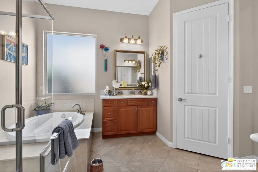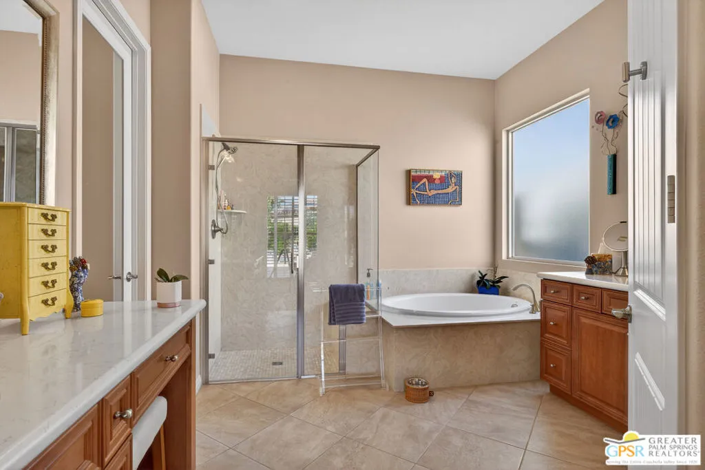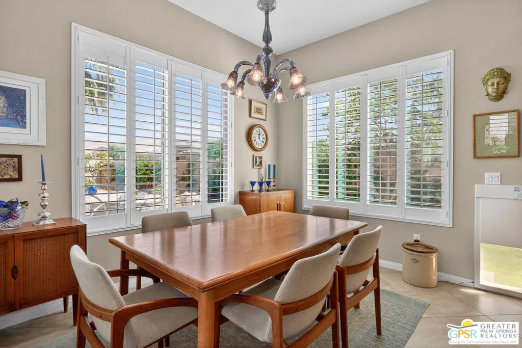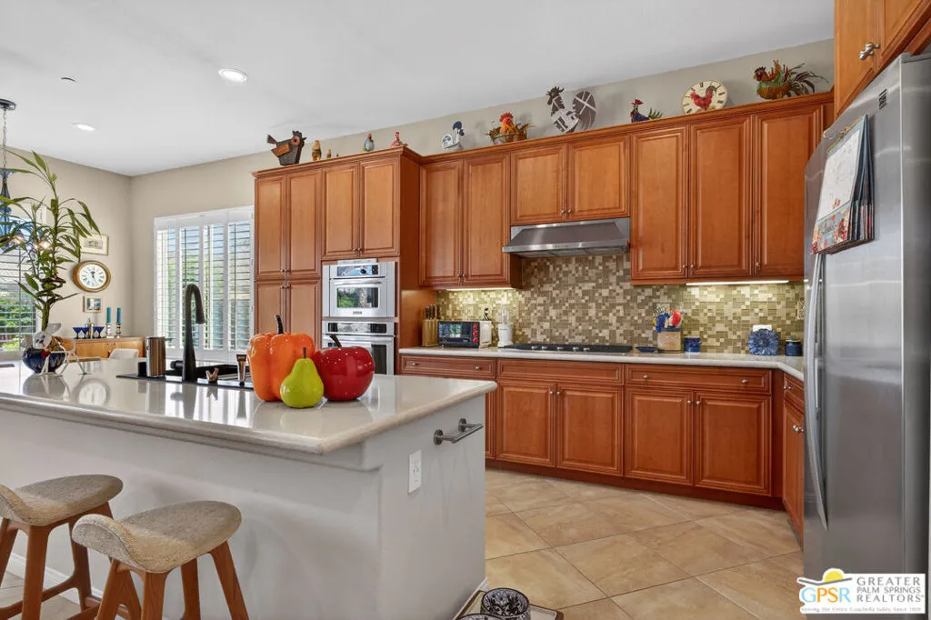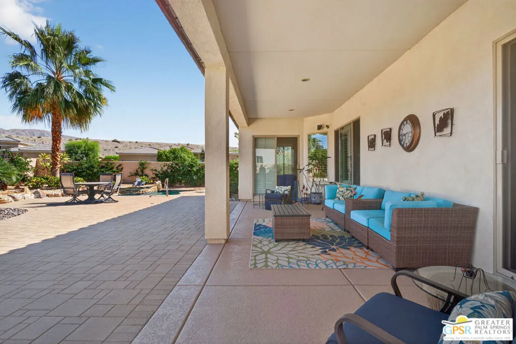 Welcome to elevated desert living in the highly desirable 55+ community of Sun City Shadow Hills where resort-style amenities and an active adult lifestyle come together. This beautifully upgraded 3-bedroom, 2-bath home offers 1,756 sq ft of open-concept living designed for comfort, ease, and entertaining. Tile flooring throughout common areas provides a clean, low-maintenance environment, while the upgraded kitchen features stainless steel appliances, modern cabinetry, and enhanced countertops with a stylish backsplash perfect for hosting friends or enjoying quiet evenings at home. The spacious primary suite offers a peaceful retreat, with additional bedrooms ideal for guests, hobbies, or a home office giving you the flexibility to live the lifestyle you've been looking for. Step outside and experience your own private backyard oasis. The oversized corner lot gives you an expanded side yard and a deeper backyard designed to maximize outdoor living! Relax by the tranquil water feature or enjoy the spool ideal for cooling off during warm desert days or unwinding under the evening sky. Thoughtfully designed for pet owners, the home also includes an electronic pet door and a fenced pet area with artificial grass, offering convenience and a safe, low-maintenance space for your pets. Living in Sun City Shadow Hills means access to world-class amenities designed for an active 55+ lifestyle, including championship golf courses, resort-style pools and spas, indoor lap pool, state-of-the-art fitness centers, and tennis, pickleball, and bocce courts. Enjoy a vibrant social calendar with clubs, classes, concerts, and events, along with walking paths, on-site dining, and beautifully maintained grounds.Whether you're seeking a full-time residence or a seasonal retreat, this home offers the perfect blend of comfort, convenience, and community just minutes from shopping, dining, and all that the Coachella Valley has to offer. Experience the best of active adult living in one of the desert's premier communities.