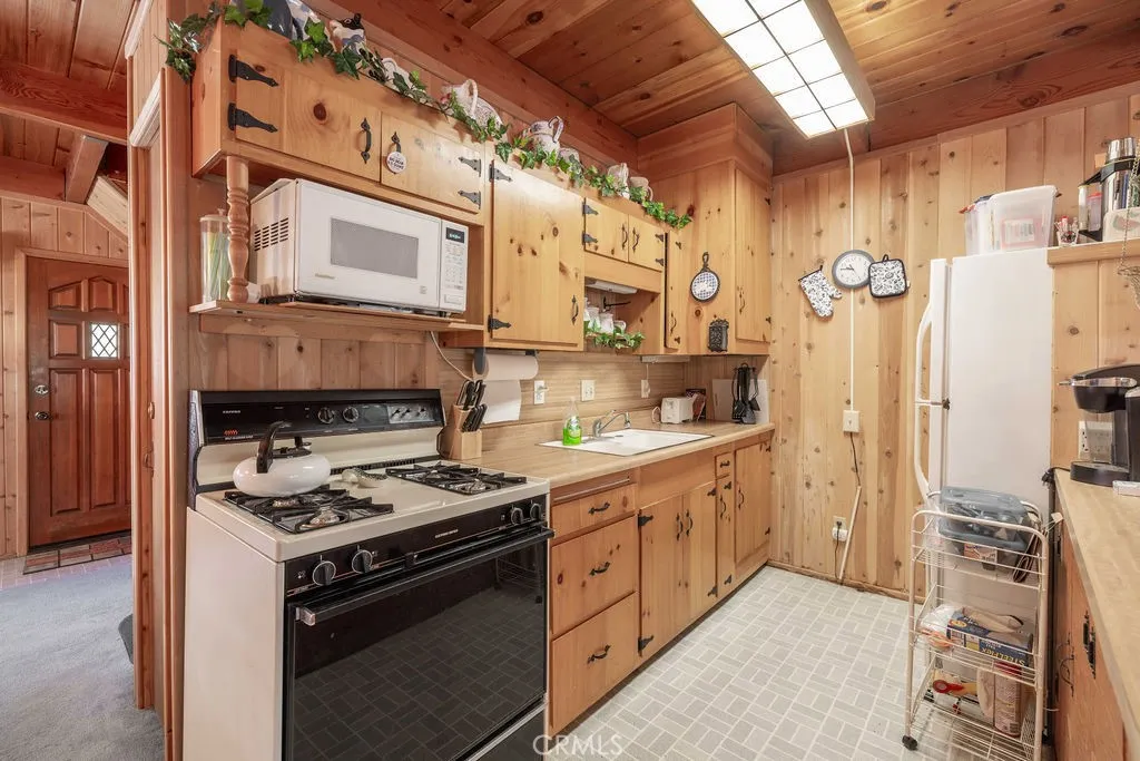 Attention contractors, investors and do-it-yourself buyers! This rustic Big Bear Lake property would make a great renovation project. This home already has the sought-after first floor bedroom, as well as a large wood-burning stove, and is located near the lake, hiking, Village, activities, dining, and the slopes. The exterior is where the majority of the renovation work is needed, while the interior is just looking for your personal touches. Wood walls and open beam T&G ceilings give this home a cabin feel, while the backyard has a large deck - great for entertaining - a brick barbeque area, and a large gently sloping 7144 sqft lot could be great for pets and kids to roam or snow play. The property is on city utilities, and has gas and electric heaters, as well as two window ac units upstairs. Two parking pads and a two-car attached garage give visitors and homeowners off-street parking options. Take a look at this unique opportunity!