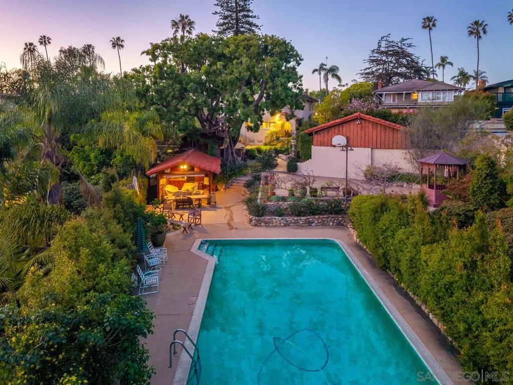 Welcome 1975 Sunset Blvd, San Diego, CA 92103. Circa-1925 Mission Hills estate on a rare 27,442 sq ft flat, usable lot. The approximately 4,100 sq ft main residence features 4 bedrooms and showcases classic architectural character with original built-ins, hardwood flooring, and timeless period details throughout. The main level includes one bedroom, an expansive living room, formal dining room, kosher kitchen with butler’s pantry, and a light-filled sunroom ideal for morning coffee or relaxation. A detached one-bedroom, one-bath guest house with kitchenette provides flexible space for visitors, extended family, or a private office. The expansive backyard, believed to have been designed by renowned horticulturist Kate Sessions, offers estate-style grounds with a pool, outdoor shower and bath, two-car garage port, additional two-car garage with guest house above, multiple garden sheds, and large open lawn areas. The property presents a unique opportunity to restore, update, or reimagine a classic Mission Hills estate while preserving its historic charm. Ideally located near neighborhood dining, boutiques, Balboa Park, downtown, and the airport. Rare opportunity to own a legacy property on one of Mission Hills’ most desirable streets.