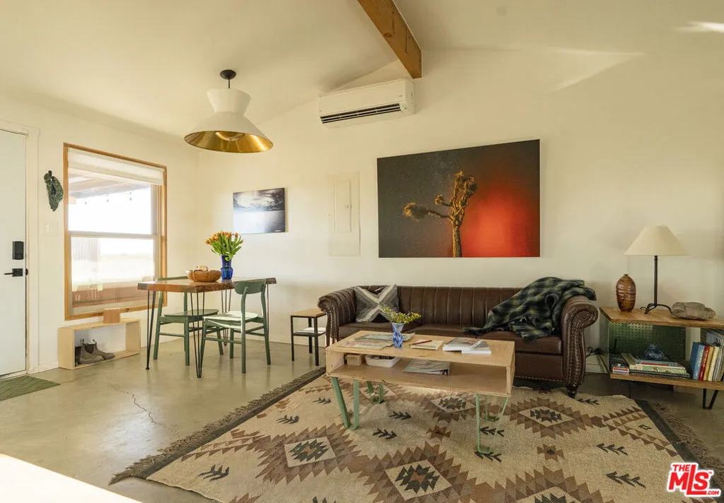 Resting under the twinkling night sky of Sunfair Heights sits this historic 1956 one-bedroom, one-bathroom homestead cabin stretched across 5 acres of open desert. Trade the buzz of the city for airy desert-modern interiors, morning coffee on the porch surrounded by mountain views, sunsets in the saloon over a BBQ feast, and stargazing on calm, quiet nights. Thoughtfully designed with a small, easy-to-maintain footprint, the property features 12-foot vaulted ceilings, a fenced exterior, a vintage trailer for guest stays, outdoor fire pit area, swing set, and a shed for tools. The home is powered by a robust solar array and battery bank setup, operating as a net-zero emissions property with no electricity bills. Easily explore protected BLM land neighboring the property, or wander into the National Park for a sunset atop a pile of boulders, followed by some beers at Mas o Menos - you're a local now!