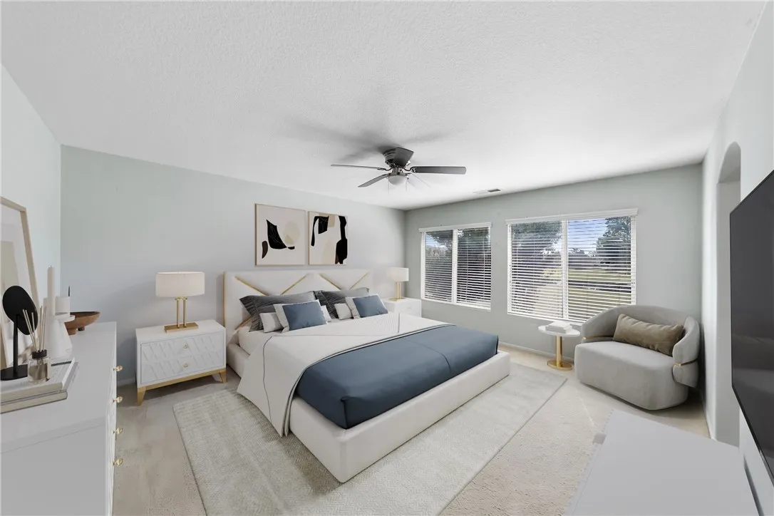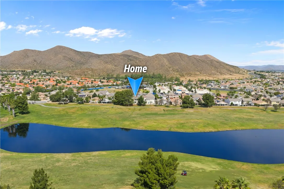 NEVER BE LATE TO YOUR TEE TIME AGAIN! Welcome to your extraordinary dream home, ideally nestled in the highly coveted Menifee Lakes community, where breathtaking panoramic views of the lush golf course and shimmering lake create a truly serene and picturesque backdrop. This expansive and beautifully appointed two-story residence offers 5 spacious bedrooms (with the potential for a 6th) and 4 well-designed bathrooms, encompassing approximately 2,916 square feet of refined yet comfortable living space. Step inside to discover a bright, airy, and thoughtfully designed open-concept floor plan that effortlessly blends elegance with everyday functionality. The gourmet kitchen serves as the heart of the home, showcasing abundant counter space, extensive cabinetry, and a massive center island—perfect for casual dining, meal prep, and entertaining on any scale. Flowing seamlessly from the kitchen is the inviting and oversized great room, where a cozy fireplace adds warmth and charm, creating the perfect ambiance for relaxing evenings or lively gatherings. Adjacent to the kitchen, a versatile game or playroom offers endless possibilities for fun, creativity, or additional entertaining space. The main level also features a generously sized two-person office, complete with elegant double French doors and an open view to the great room —ideal for remote work or a quiet retreat. A conveniently located downstairs bedroom and full bathroom provide the perfect setup for guests or multigenerational living. Upstairs, escape to the luxurious and tranquil primary suite, a true private retreat featuring dual vanities, a deep soaking tub, a separate walk-in shower, and an expansive walk-in closet. The upper level also includes a dedicated laundry room, three additional generously proportioned bedrooms, and a flexible office or den space that can easily be converted into a sixth bedroom to suit your needs. Adding even more versatility, the 3-car tandem garage includes a thoughtfully finished bonus room—complete with a ceiling fan—perfect for a private gym, studio, or hobby space. Ideally located just minutes from shopping, dining, top-rated schools, and convenient access to the 215 freeway, this home offers the perfect blend of peaceful suburban living and everyday convenience. And with NO HOA, you’ll enjoy added freedom and flexibility. This is a rare opportunity to own a truly exceptional home in one of Menifee’s most desirable communities—don’t let it slip away!