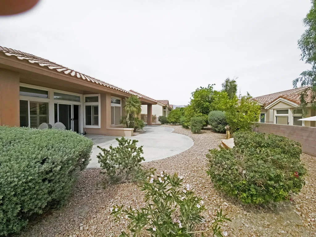 Beautiful Lalique Model On A Premium Corner Lot Near Mountain View ClubhouseThis Popular Lalique Floor Plan Is Ideally Situated On A Desirable Corner Lot Just Moments From The Mountain View Clubhouse--One Of Sun City Palm Desert's Most Sought After Locations. Inside, The Home Features New Plank Flooring, High Ceilings, And Custom Shutters, Creating A Bright, Modern, And Inviting Atmosphere. The Open Concept Layout Offers Effortless Flow Between The Living, Dining, And Kitchen Spaces.The Spacious Primary Suite Includes A Charming Bay Window Overlooking The Yard, A Generous Walk In Closet, An En Suite Bath With Dual Sinks, A Stall Shower With Textured Glass Enclosure, And A Skylight That Fills The Room With Natural LightThe Guest Bedroom Is Thoughtfully Positioned On The Opposite Side Of The Home For Privacy. The Adjacent Guest Bath Features: A Soaking Tub/Shower Combination And A Skylight That Brighten The Space BeautifullyAdditional Features Include, Air Conditioning System Replaced In 2020, A Spacious Laundry Room Currently Used As An Office And Extra Sleeping Area--Flexible Space To Suit Your Needs And A 2 Car Garage With Built In Storage Plus A Dedicated Golf Cart NicheThis Well Maintained Lalique Offers Comfort, Style, And An Exceptional Location--Perfect For Enjoying The Sun City Lifestyle. Buyer To Pay HOA Replenishment Assessment Equal To Six Months Dues.