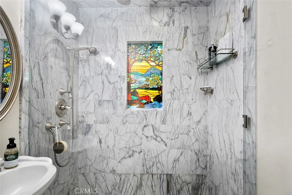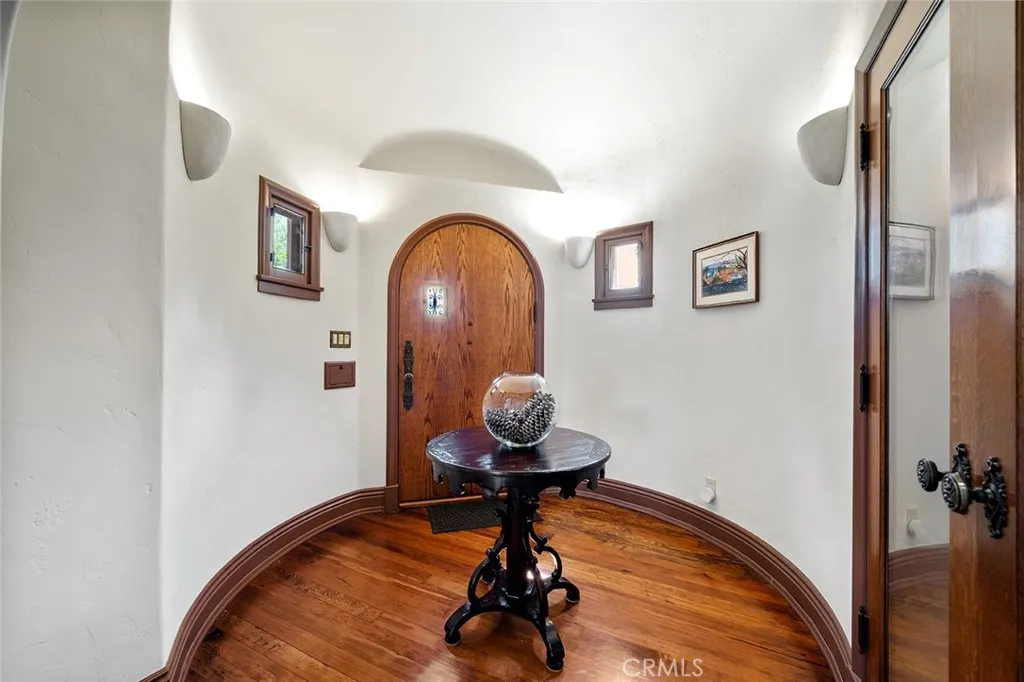This home is where history, artistry, and everyday living come together in the most inspiring way. This extraordinary 1920s French Tudor residence is more than a home, it’s a creative sanctuary. Once owned by renowned German violin maker Gustav Fassauer-Ferron, founder of Pasadena’s celebrated Arcade Violin Shop, the property carries a legacy of craftsmanship, music, and imagination. From the moment you arrive, illuminated by classic gas lamps, a sense of story and soul unfolds. Up the stairs leads to a formal entry w/ a reimagined entry closet that now serves as an inviting wine cellar; beckons to be enjoyed. The living room inspires with soaring beamed ceilings, abundant natural light from a large picture window, & a seamless connection to a front porch overlooking a lush, private yard framed by tall hedges. A grand Normandy fireplace mantel anchors the space w/ built in speakers. French doors from the formal dining opens to a brick patio for al fresco dining. Note the thoughtfully placed lighting to highlight art and ambiance in the living and dining area while an antique German hutch enriches the dining room w/ a pass through to the warm galley kitchen that includes a wooden rolling table and appliances. Stackable laundry (included) across from breakfast area with an exterior door to the storybook backyard. The primary suite is a work of art, featuring hand-crafted doors from India and pressed metal ceilings from Tennessee. Two additional bedrooms are on the main level, while upstairs a loft with a half bath, potential for expansion, and oversized walk-in closet offers flexibility as a studio, library, or retreat. A charming attached apartment, accessed by a whimsical spiral staircase, includes a Murphy bed, built-in desk, couch, chair and refrigerator; ideal for guests, a home office, or rental potential. Modern upgrades include paid-off solar and a Tesla charging station. The expansive patio, iron gazebo, plunge pool, and waterfall create a private outdoor retreat. A gym/studio with steam room extends from the two-car garage. Located near Eaton Canyon, the Huntington Library, and the Los Angeles Arboretum, this home is rich in history, layered with character, and designed to inspire. See it! Love it! Buy it!