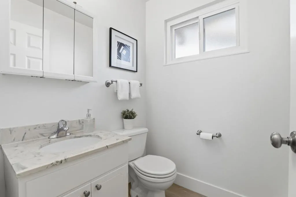Move right into this beautifully updated 5 bedroom, 2.5 bathroom home with fresh flooring throughout and a thoughtful, flexible layout for everyday living, work, or creative spaces. Enjoy a bright interior with hardwood floors, recessed lighting, and a cozy wood-burning fireplace anchoring the main living area. The refreshed kitchen features tile countertops, newly painted cabinetry, under-cabinet lighting, and a full suite of appliances. The formal dining area connects seamlessly to the outdoors with sliding doors opening to an expansive deck, ideal for entertaining. Bedrooms offer mirrored closets with built-in organizers, while the primary suite includes deck access and an ensuite bath with a tiled stall shower. Owned solar for wonderfully efficient energy usage. The backyard is designed for both fun and function with paver walkways, mature shade trees, a custom bar area with seating, and a large play structure. A detached shed with electricity provides extra versatility for hobbies or storage. Attached 2-car garage with built-ins and workshop space completes the home. Excellent commuter location to Silicon Valley tech giants. Prime location near Baker Elementary, Moreland Middle, Prospect High School, major expressways, shopping, dining, and more!