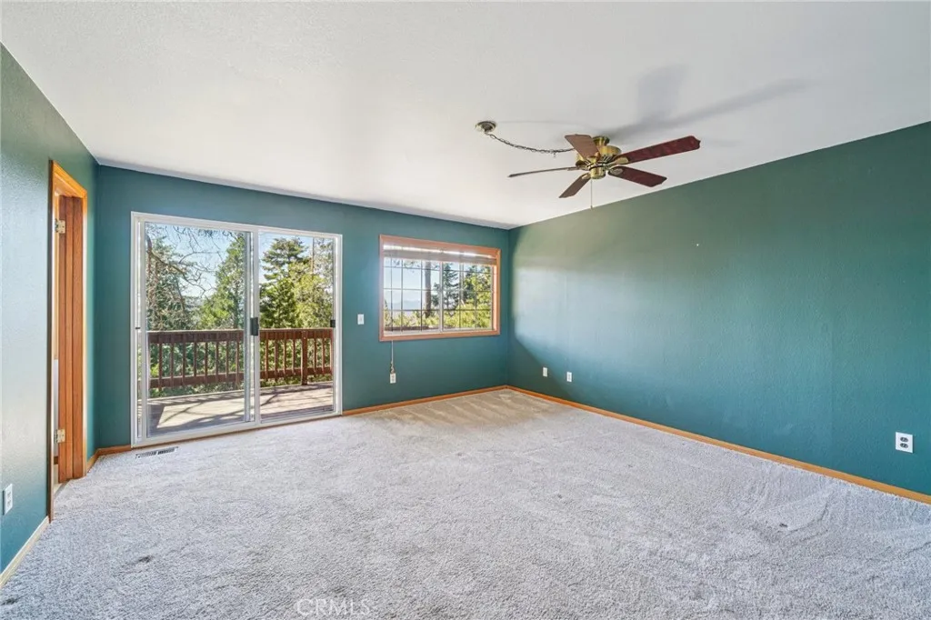 Perched to capture sweeping mountain-to-desert vistas, this Twin Peaks retreat pairs architectural character with everyday livability—offering a wide wrap-around deck, no HOA, and a county paved and maintained road for easy year-round access. Inside, the living experience unfolds beneath soaring vaulted ceilings with rich tongue-and-groove detail and wood flooring that grounds the space in warmth, while a built-in with mini fridge adds a subtle layer of entertaining convenience. The living room flows effortlessly to the expansive deck, already equipped with a gas line for outdoor grilling, creating a seamless indoor-outdoor rhythm framed by mature trees for privacy. At the heart of the home, the kitchen is both functional and inviting, opening to the living room and bonus room and centered around a large arched window that draws in natural light and distant views, complemented by a deep pantry with built-ins and dual breakfast bars designed for connection and flexibility. The primary suite offers a more private retreat, complete with a spa tub, a generously sized closet with built-ins, and its own secluded deck. Beneath it all, a substantial unfinished build-up area presents a rare opportunity for expansion, creative use, or additional storage—an adaptable canvas that adds long-term value to an already compelling mountain property.