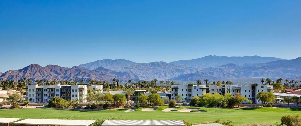 Experience elevated resort-style living at Revel Palm Desert, a premier 55+ lease community designed for independence, connection, and ease. This 2 bedroom, 2 bath residence features a spacious layout with a charming breakfast nook, along with mountain and courtyard views and a private balcony for seamless indoor-outdoor living. Beautifully appointed apartment residences offer open floor plans, oversized windows, wood-look plank flooring, and full gourmet kitchens complete with stainless steel appliances, quartz countertops, shaker-style cabinetry, and tile backsplashes, along with custom walk-in closets and in-unit washers and dryers for ultimate convenience. Residents enjoy a true full-service lifestyle with thoughtfully curated amenities including a state-of-the-art fitness and movement studio offering cardio, strength training, and group classes, as well as a tranquil spa, full-service salon, theater, creative studio, The Hub gathering space, and the beautifully designed Revel Room for events and private gatherings. Outdoor living is equally impressive with a heated saltwater pool and spa, pickleball court, landscaped event lawns, fire pit, BBQ areas, and a dog park. Your Revel membership is more than rent, it's everything you need to live independently and thrive in a vibrant, connected community, with inclusions such as monthly dining credits, weekly housekeeping, utilities, maintenance, 24-hour concierge services, scheduled and private transportation, guest suites for visiting friends and family, and exclusive access to the nationwide Revel Travel Club.