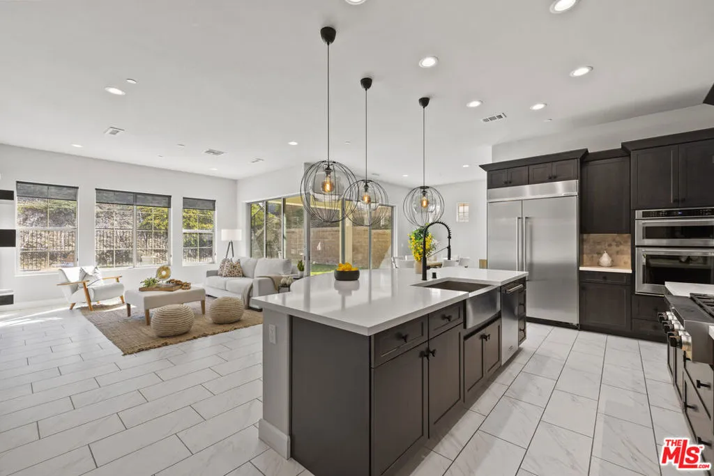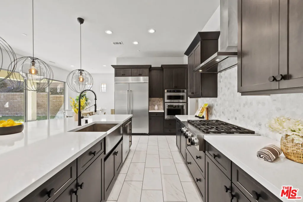 THE STERLING at West Hills. A custom-built two-story "Venice" model located in this highly coveted community. This is an incredible opportunity to own an upgraded newer construction home surrounded by stunning mountain views. This elegant 5-bedroom, 6-bathroom residence epitomizes the Southern California lifestyle. Interior features include a mudroom off the garage, walk-in pantry, and a gourmet chef's kitchen with built-ins that opens to a bright family room with a stunning fireplace feature. The dining room features retractable sliding doors that create seamless indoor-outdoor access to the backyard oasis. Outside, enjoy a sparkling pool and spa with Baja shelf, an outdoor kitchen with built-in grill, and a covered patio ideal for entertaining. The impressive primary suite is located downstairs and includes a spa-inspired bathroom featuring a large stand-alone soaking tub, separate shower, dual vanities, and dual custom closets. A dedicated office or den is also located at the front of the home. At the top of the staircase, a large great room provides additional space for entertaining, a playroom, or a secondary living area. All four upstairs bedrooms feature their own en-suite bathrooms. Additional highlights include custom window treatments, soaring cathedral ceilings, and an owned solar system ready for activation. The garage includes a finished bonus room with glass doors that was previously used as a private workout space. Bordered by preservation land, this home is a statement of modern luxury designed for maximum privacy and serenity. The community features 143 luxury single-family homes and a small park perfect for walking pets and enjoying the neighborhood.