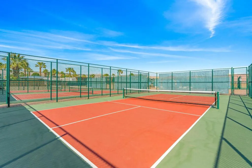 Exceptional 1-bed/1-bath seasonal or full-time retreat at The Sands RV & Golf Resort!Nestled in a quiet, well-maintained pocket of the community and backing onto a picturesque natural wash, this home offers a rare combination of privacy, convenience, and resort-style amenities. Mature palm trees frame your backyard, creating an inviting desert-oasis ambiance with stunning Mountain View's. The spacious, paved outdoor area features an easy-care sprinkler system on a timer and a delightful picnic/entertaining space--perfect for morning coffee or an evening under the stars.Inside, you'll find a thoughtful layout with excellent storage throughout. The kitchen boasts abundant cabinetry, a gas range and an over-the-range microwave--ideal for casual chef duties or entertaining guests. The bathroom features a walk-in shower (no tub) and built-in cabinets for linens and essentials. The living area is inviting, bright, and ready for seasonal or year-round comfort.A generously sized shed provides extra workspace or storage for golf gear, bikes, tools, or seasonal furnishings. This home is being sold furnished (minus personal items), making it truly move-in ready. The same owners have cared for it for approximately 13 years--used for seasonal enjoyment but meticulously maintained.Living at the Sands means more than just a home--it's a lifestyle. Golf lovers will appreciate the on-site 9-hole course, driving range and a putting/chipping green. Stay active with pickleball, a fitness room and the community's heated pool & two spas. The resort also offers activity rooms, a library, laundry facilities, dog parks and organized events--an engaging, friendly community that blends carefree living with comfort.Whether seeking a seasonal base, full-time desert retreat or rental-friendly investment, this home checks all the boxes. Low maintenance living, outdoor privacy, desert charm, resort amenities and mountain views--all located in a quiet, welcoming resort setting.Don't miss the opportunity to own a special place at the Sands RV & Golf Resort where every day feels like a getaway. Schedule your showing today and step into your sun-soaked, palm-fringed paradise