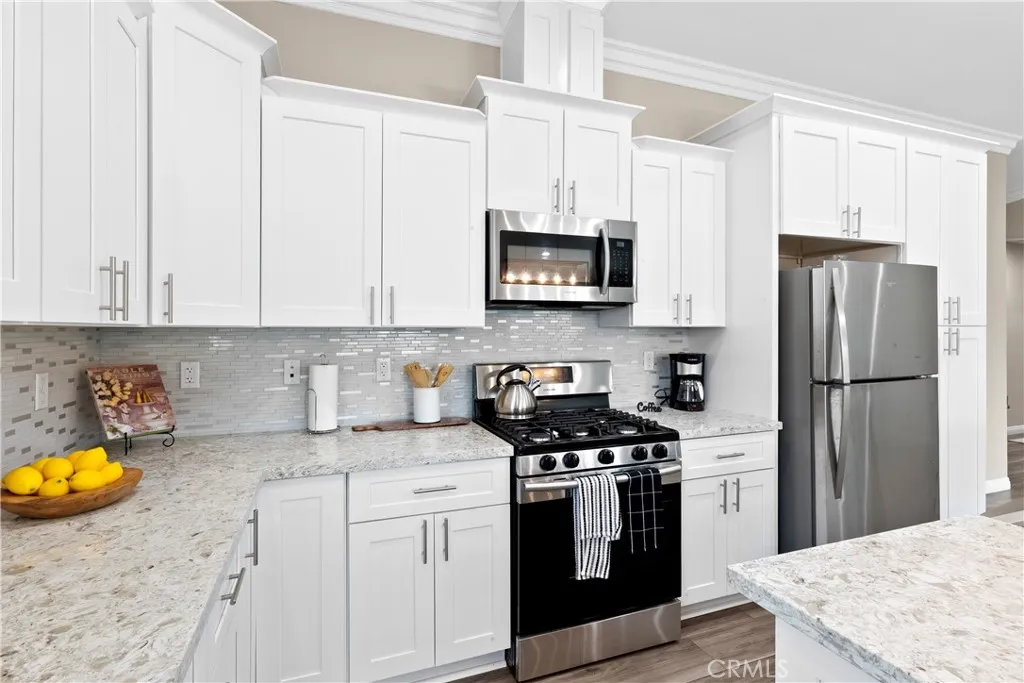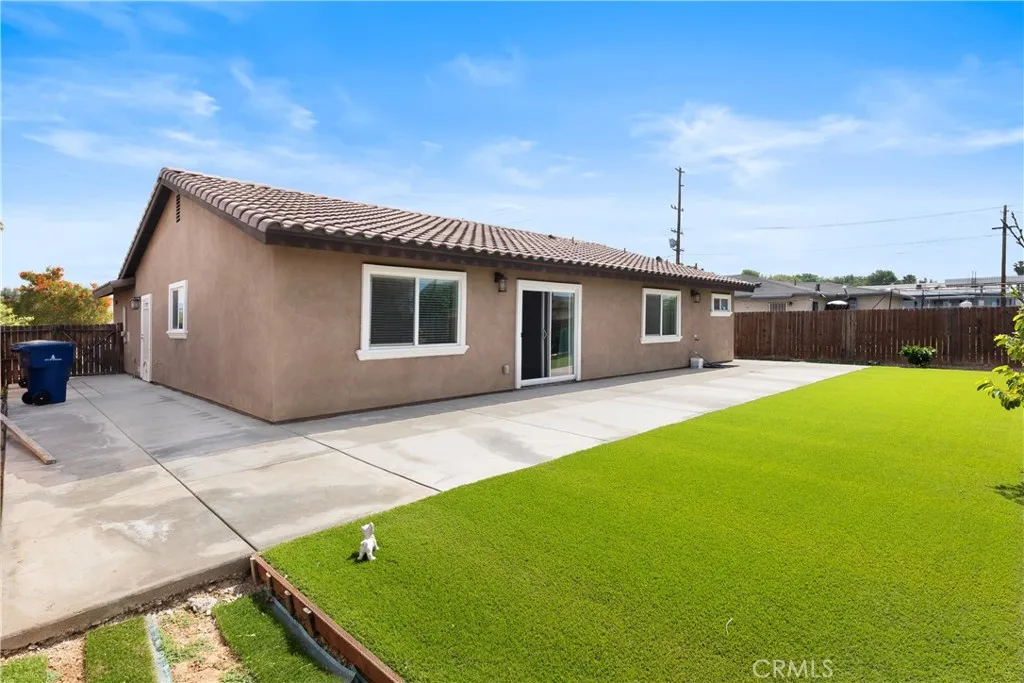 Built in 2019, this single-story Riverside home offers a functional layout with modern finishes and low-maintenance features. The home includes 4 bedrooms and 2 bathrooms, along with a 2-car attached garage, and a design that connects the main living spaces for everyday use and entertaining. The kitchen features white cabinetry, quartz countertops, stainless steel appliances, and a center island that opens directly to the living room. There is also a designated dining area along with a breakfast bar at the kitchen counter for additional seating. Vinyl flooring runs throughout the main living areas, providing durability and easy upkeep, while all bedrooms are carpeted and include ceiling fans. The primary bedroom offers a comfortable layout with carpet flooring, a walk-in closet, and an en-suite bathroom that includes a walk-in shower with tile wall surround. A separate laundry room adds convenience and keeps utility space tucked away from the main living areas. The backyard is designed for low maintenance, featuring a concrete patio area just outside the home and artificial turf in the rear yard, helping reduce water usage while still offering usable outdoor space. This home is just minutes from the 91 Freeway, with nearby shopping, dining, and access to the orange groves along Victoria Avenue. This property offers a practical combination of location, layout, and modern features. Make this great home yours today!