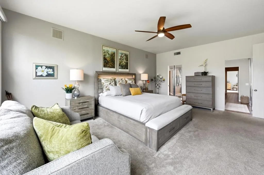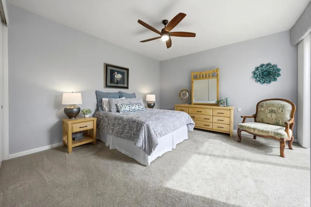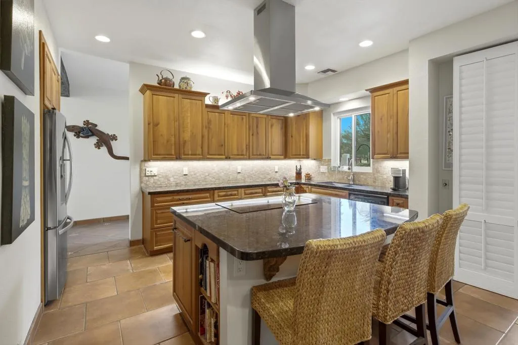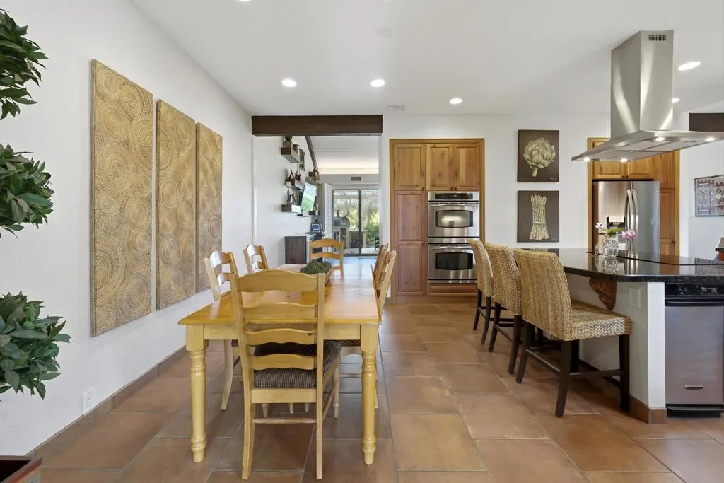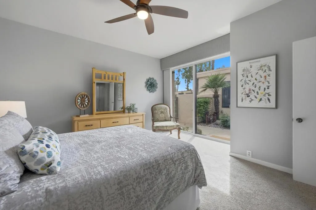 Wonderfully updated 2 Bedroom, 2 Bath plus a bonus room which can be used as an additionalbedroom, however, being used as a den/officearea. Located in Mission Hills Country Club near the 8th hole of the Dinah Shore Course. Beautiful panoramic mountain views to the west. The home features a private patio with built-in BBQ, new Alumawood patio cover with just steps to the community pool. The home showcases vaulted ceilings, wet bar with new fridge for that effortless entertaining, updated primary and guest bathrooms, kitchen remodel,new kitchen fridge with that fabulous craft ice maker, Silhouette motorized & programmable blinds in the primary bedroom, all new double paned windows and sliders throughout, new shelf built-ins in living room and den plus many more additional upgrades. Come visit this spectacular condo- great for a second home orinvestment property. OPEN HOUSE: Saturday,April 4, 2026 - 12 PM- 2 PM