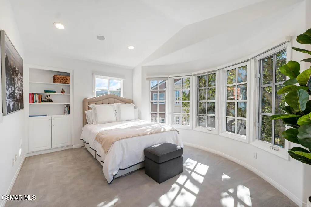 Fully Furnished at $16,995 and available June 1st. Pristine and fully renovated Trentwood townhouse inside the exclusive guard-gated community of Lake Sherwood. Situated on the coveted view side of the street, this home offers breathtaking panoramic views of the club, lake, and surrounding mountains.Please notice every detail, featuring French Oak wood flooring throughout and a sleek, all-white kitchen equipped with top-of-the-line stainless steel appliances. Stylish new lighting, modern LED fixtures, and designer finishes enhance the home's contemporary appeal. The bathrooms have been completely remodeled with the latest high-end styles.The spacious and well-designed floor plan includes four bedrooms, an office, a den, and a luxurious master retreat with a private sitting area. Three full baths provide ample space and convenience. The three-car garage, each with its own separate door, ensures easy access--no tandem parking here! Feels like a brand-new home!